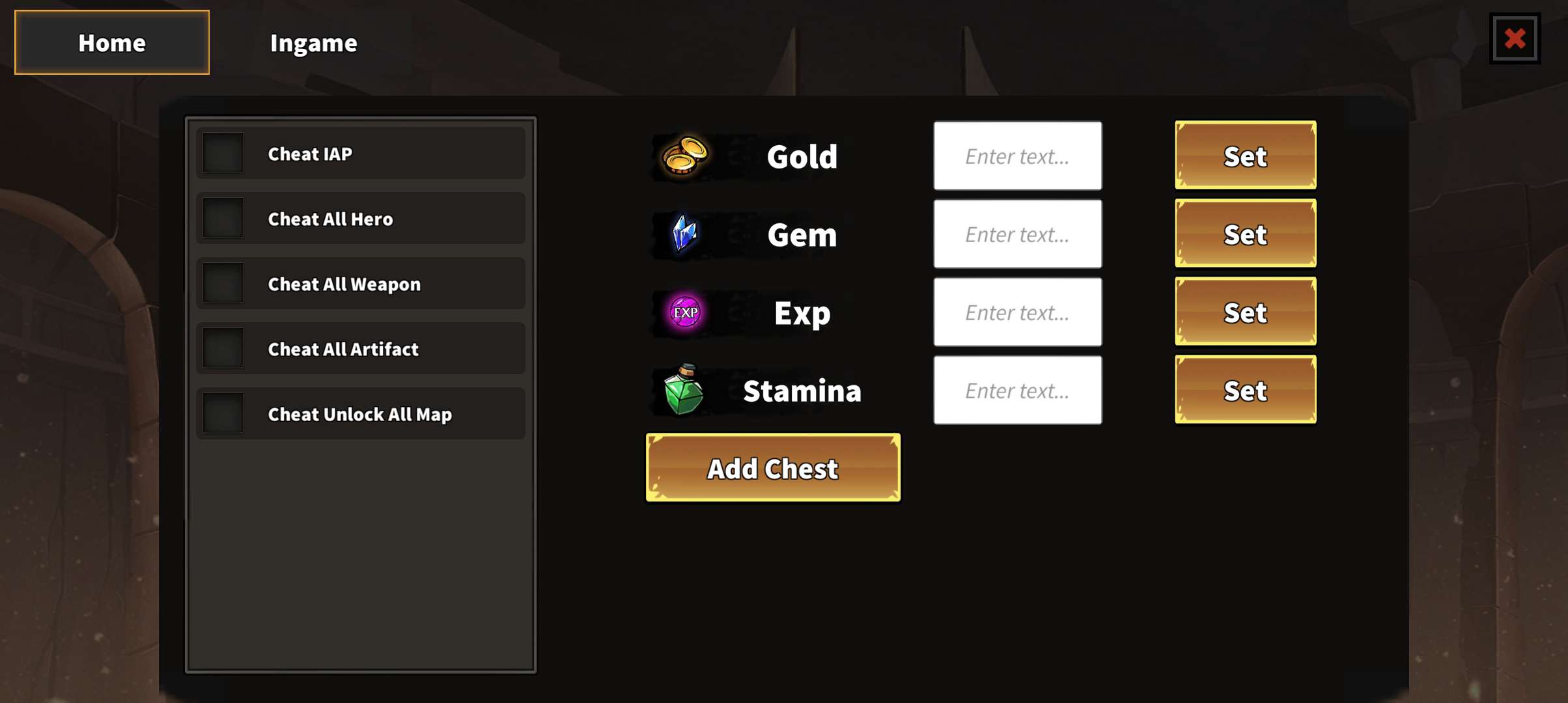 ¿ªÆôÓÎÏ·×÷±×²Ëµ¥(×óÉϽÇÍ·Ïñ£¬½øÈëºóµãÓÒϽǵÄÀñºÐ)×Ô¶¨Òå½ð±Ò¡¢Ë®¾§¡¢¾Ñé¡¢ÄÜÁ¿¡£¡¾×¢£ºÊýÖµ²»ÒªÌ«¶à£¬¹»ÓþÍÐС¿