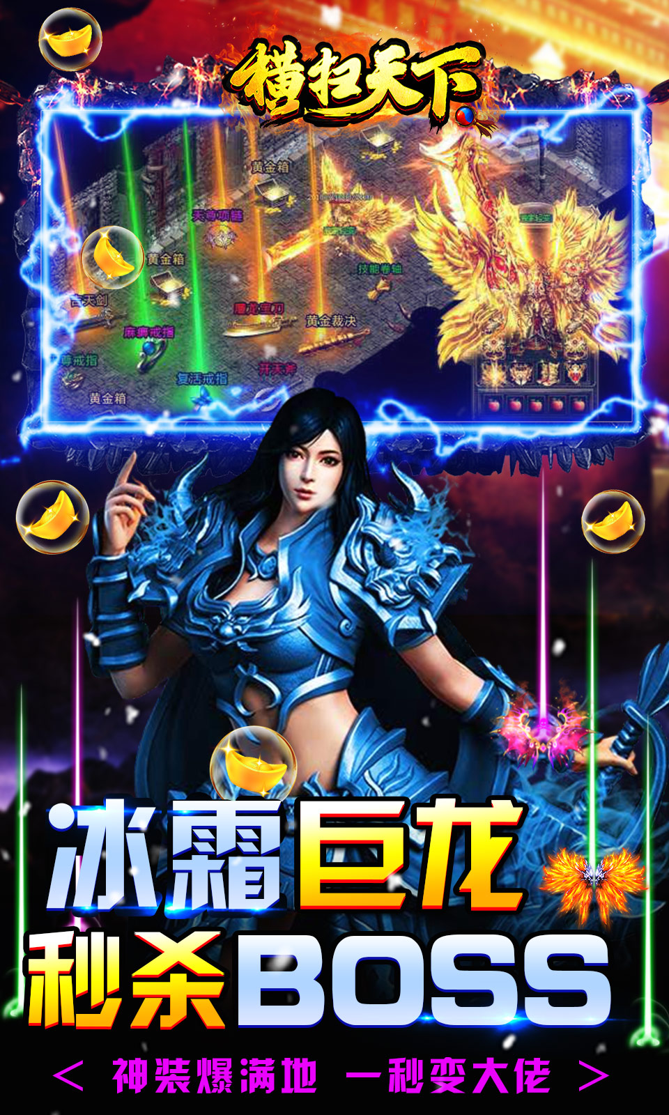 横扫天下(刷充养龙全免)2023年震撼巨作!上线送神器4件套、斩杀时装、炫酷金龙,无压力虐BOSS,再送狂欢三重礼: