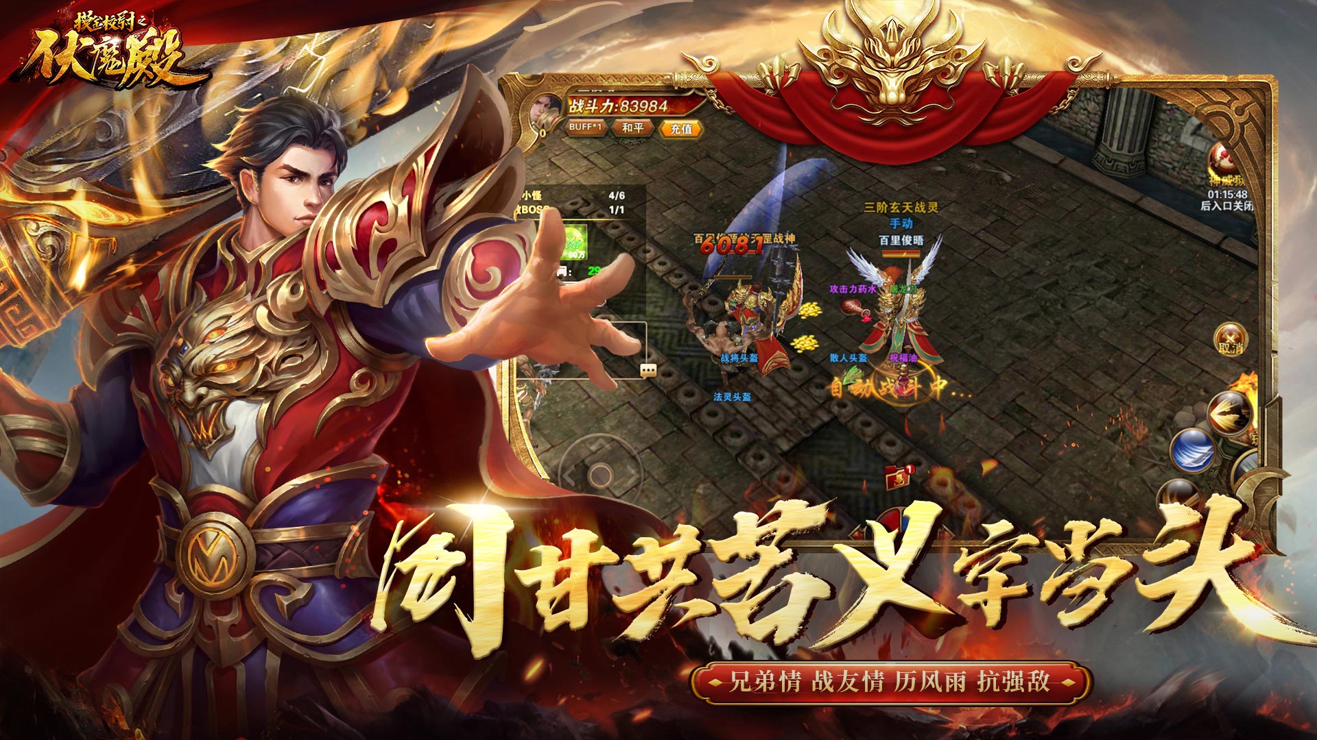 《摸金校尉之伏魔殿》经典传奇重燃,火热震撼来袭!传承经典传奇三职业,战、道、法,组合大招瞬杀BOSS!全屏多人PVP即时战斗,提刀就砍!万人攻沙实时语音互动,带来最真实最有代入感的探索与战斗体验,热血与兄弟并存,重现沙城巅峰岁月,传奇不死,情义不散!