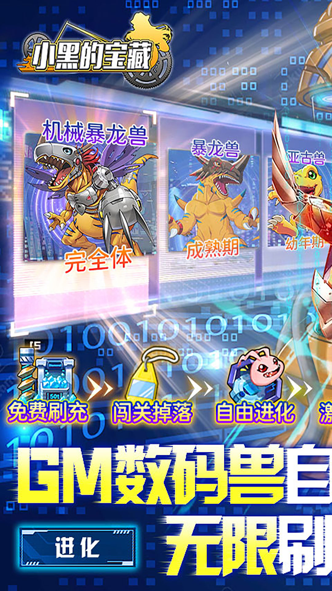 1、上线送VIP7,金币一亿,钻石888万,充值比例1:100002、登录三选一主宠数码兽【亚古兽,巴鲁兽,巴达兽】3、上线就送GM神权,首日万抽领取炫酷坐骑、更有超多真充卡领取。送无限点充,VIP全白给。4、买断系统,一键买断,终身领取,更有大礼送无限连抽(每天在各种活跃活动里领取连抽道具)。5、另有海量经典数码兽,游戏里免费得,还原经典,唤起回忆。6、 每日在线领GM点,GM商城全免,0氪也能当大佬。7、线下充值返利,钻石拿到手抽筋。线下活动礼包,让你一步登顶!8、线上线下活动双重出击不停歇,福利满满