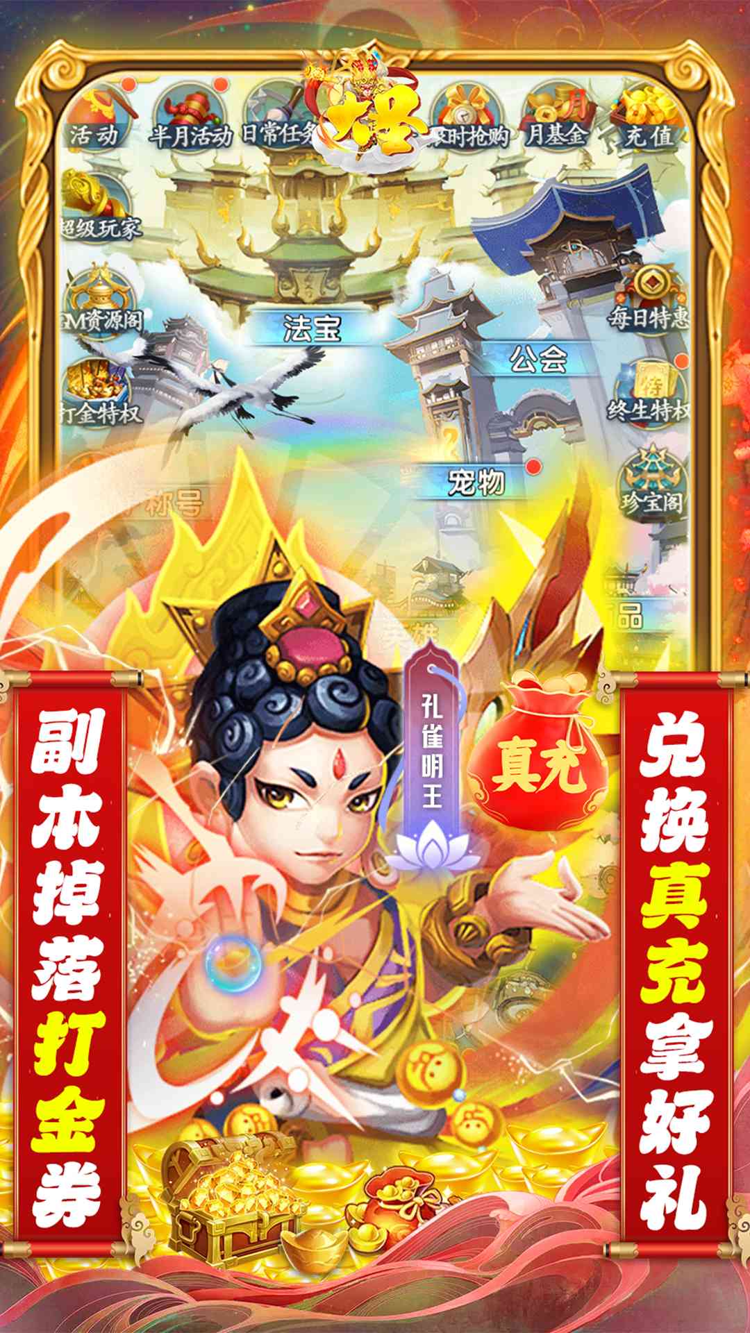 现在登录游戏创角就送满级VIP(VIP15)、一万元真充卡。次日送紫金神仙,三日送金色宠物,每日在线额外领2000元真充。免费激活无限资源,每日在线送真充,在线奖励拿不停,新版副本打金刷充。福利满满,让你不充值也能走土豪路线!