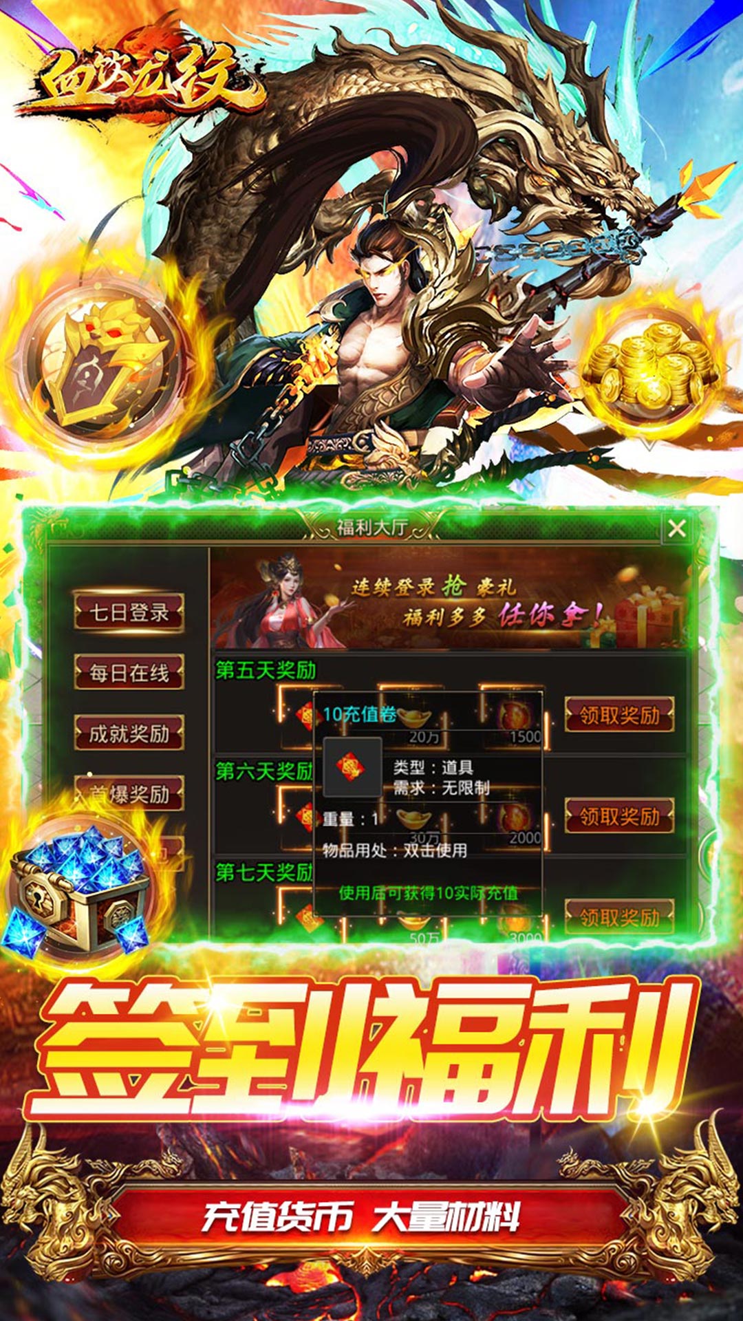 1、上线免费获得魂环,群体切割,每天签到领充值;2、超高充值比例1:10000(钻石),各种福利领不停3、超快的打金速度,超燃的打怪特效;4、越高级的地图装备越好,不卡转生不卡等级,玩法简单!