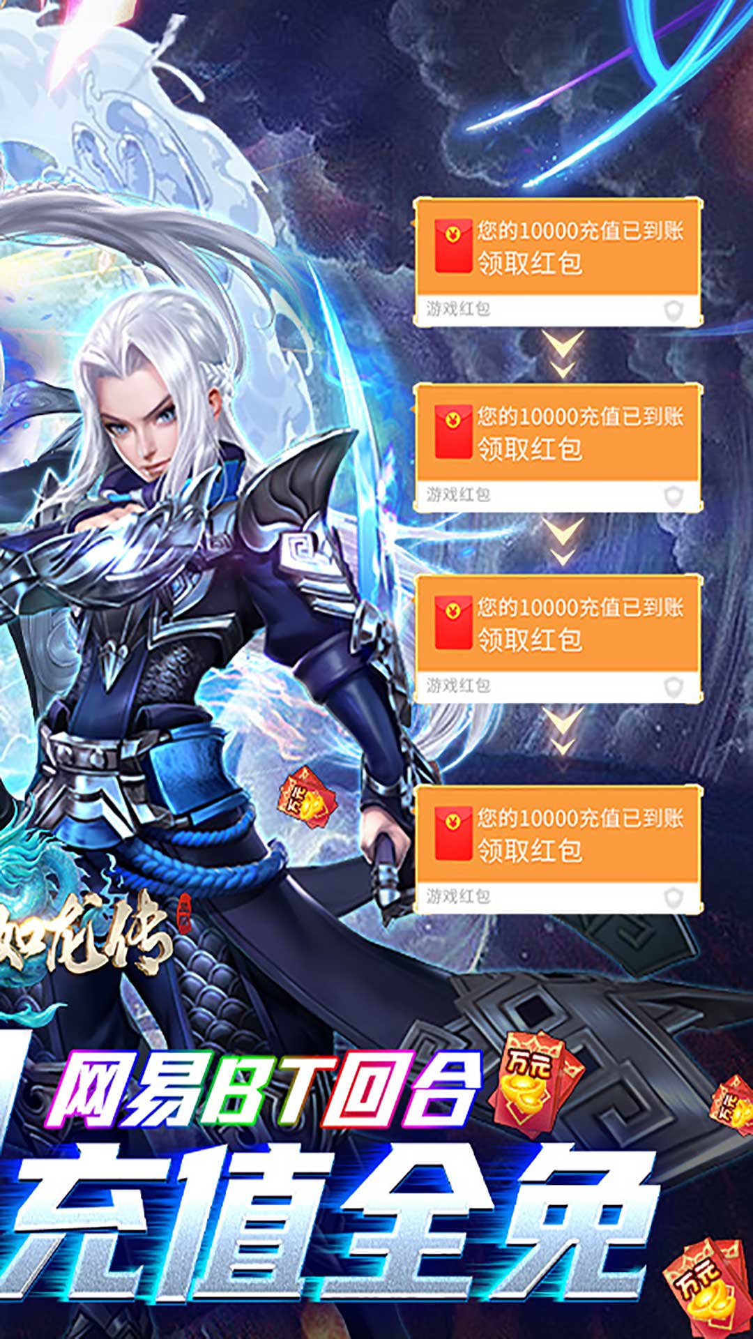 《三国如龙传(网易现金代充版)》是网易首款BT版大福利次世代3D回合制三国大作,版本特色:游戏新增现金点,可免费进行充值,购买部分直购商品。可在真实充值界面进行充值,让玩家享受不花一份钱体验真实充值体验。打破回合制游戏禁锢,战斗自由走位、自创阵法,全新引入骑战系统,以谋略定胜负!三国名将绿色收集,自由搭配打造最强阵容;真实再现百城十三州大地图,回合制也能跨服国战;浪漫结婚、兄弟知己、封土建邦,让你亲身领略高仿真乱世社交。