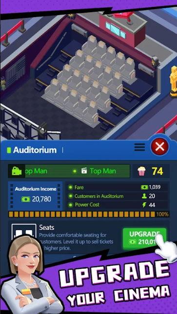 吸引更多客户,提供最佳电影体验,解锁更多观众席,播放最酷的电影!