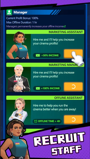 为您的电影院聘请离线经理,在您不在时保持运行,并获得利润。
