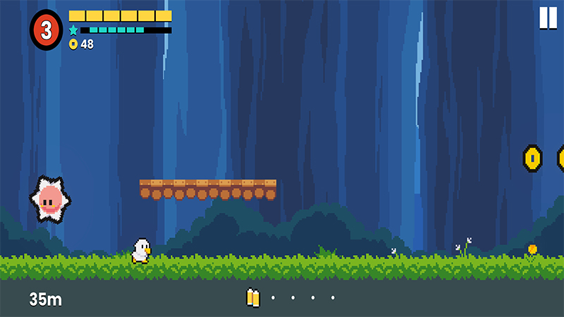 《小鸡的追逐》是一款非常可爱的像素横版过关游戏。