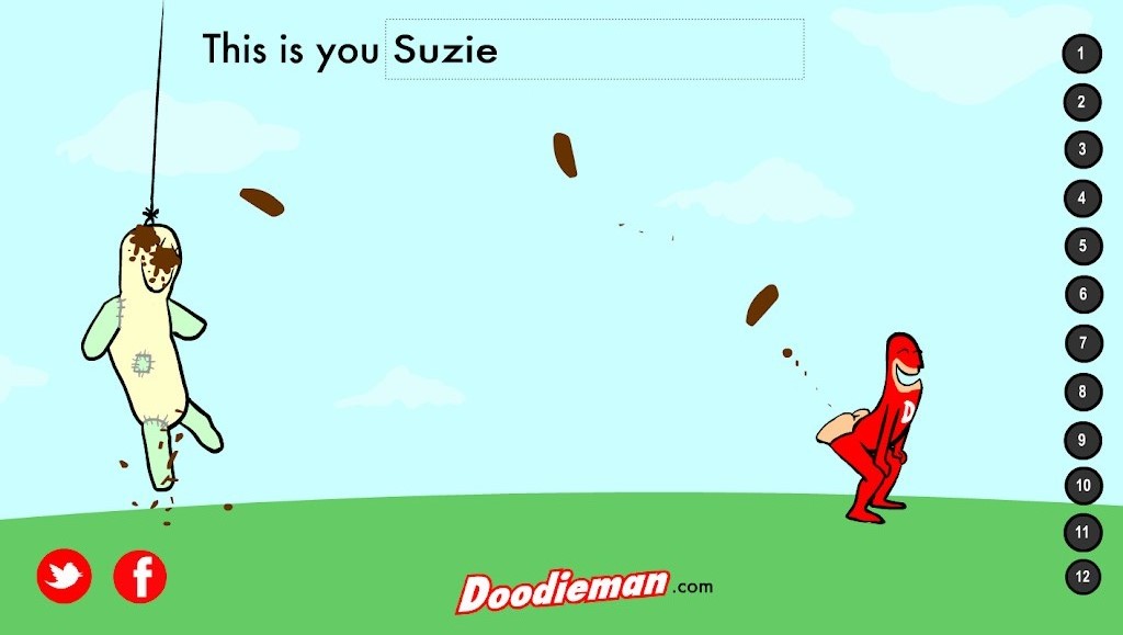 用朋友或敌人的名字命名这个娃娃,点击一个按钮,大便超人就会在上面涂鸦!大便超人是涂鸦之王,他在这里帮助你报复你最不喜欢的人,或者让你最喜欢的人开怀大笑!这款经典游戏是你应用程序系列的完美补充,它还有一种在假人上涂鸦的额外方式!