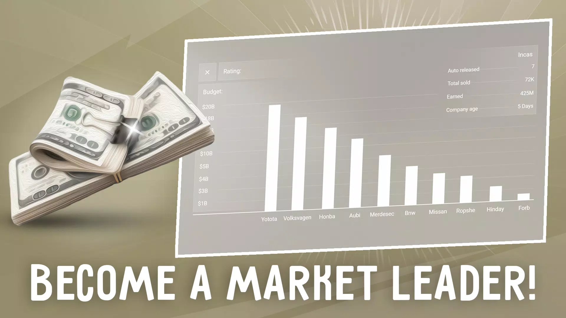 在通往成功的道路上,作为汽车大亨,做出艰难的决定。您可能需要升级工厂或与信誉良好的公司签订合同。如果您的汽车出现问题,请开展召回活动,回应您的声誉和公司形象所依赖的采访。