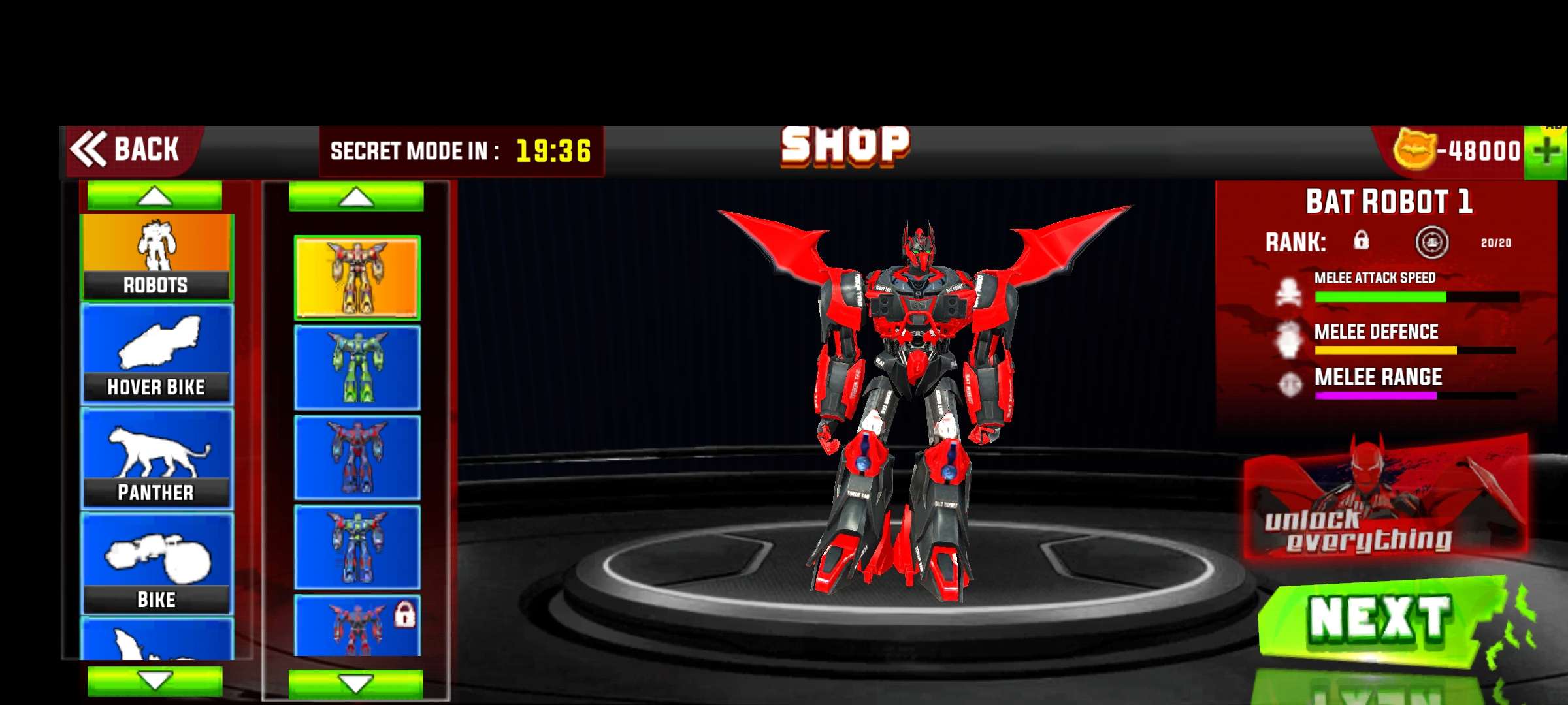 成为一名真正的飞行蝙蝠机器人战斗机,变身为摩托自行车并不断升级您的力量,以在这款机器人变身游戏中挑战大老板。飞行蝙蝠机器人自行车游戏具有令人上瘾的游戏玩法,您将享受这种有趣的变形和机器人战斗组合。