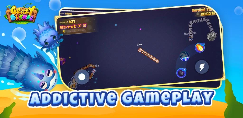 Crazy Slither ÊÇÒ»¿îÐÝÏÐÊÖ»úÓÎÏ·£¬Íæ¼Ò³ÉΪһÌõ¶ÀÌØµÄÉߣ¬²¢ÍÌÊɵØÍ¼ÉϵÄ×ÊÔ´£¬±äµÃÇ¿´ó¡£