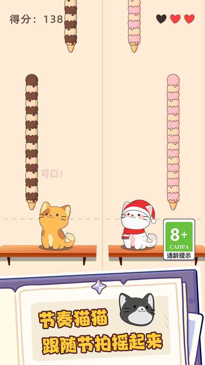 要玩,您需要做的就是感受可爱猫咪歌曲的节奏并控制您的 2 只手,让猫咪们都吃饱。粮食不断下降!你能喂饱他们吗?