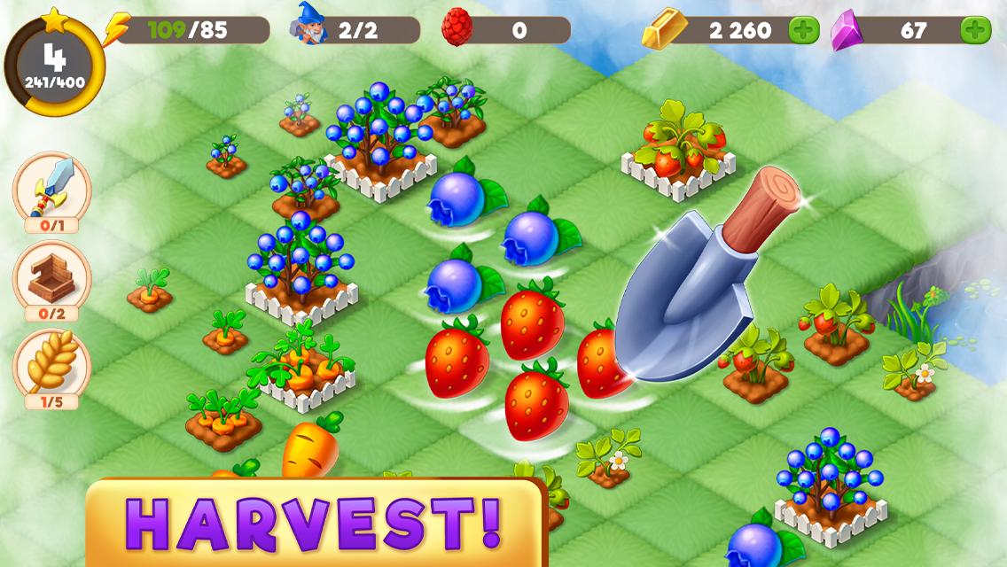 种植农作物并收集资源,设计和发展自己的王国!匹配和组合 3 个或更多的项目会导致每个项目的进化。在您的游戏路径中,您可能会遇到龙和怪物,但请记住,主要任务是合并对象以开发您的土地!游戏中有不同的角色,每个角色都有自己独特而令人兴奋的故事!他们将帮助您提高人口,扩大您的财产,并将王国变成繁荣国家。
