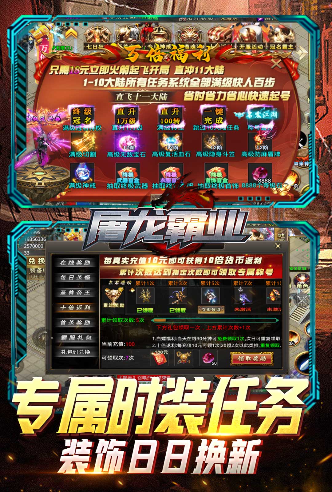 1:超高爆率!超多爆率。2:上线送自动拾取,解决一件一件拾取的痛苦!3:超多地图剧情NPC,新类传奇玩法!4、不花钱做任务也能满系统!5、装备首爆,让玩家前期打怪就能领奖励。6.打怪掉充值币,货币全互通。散人最爱