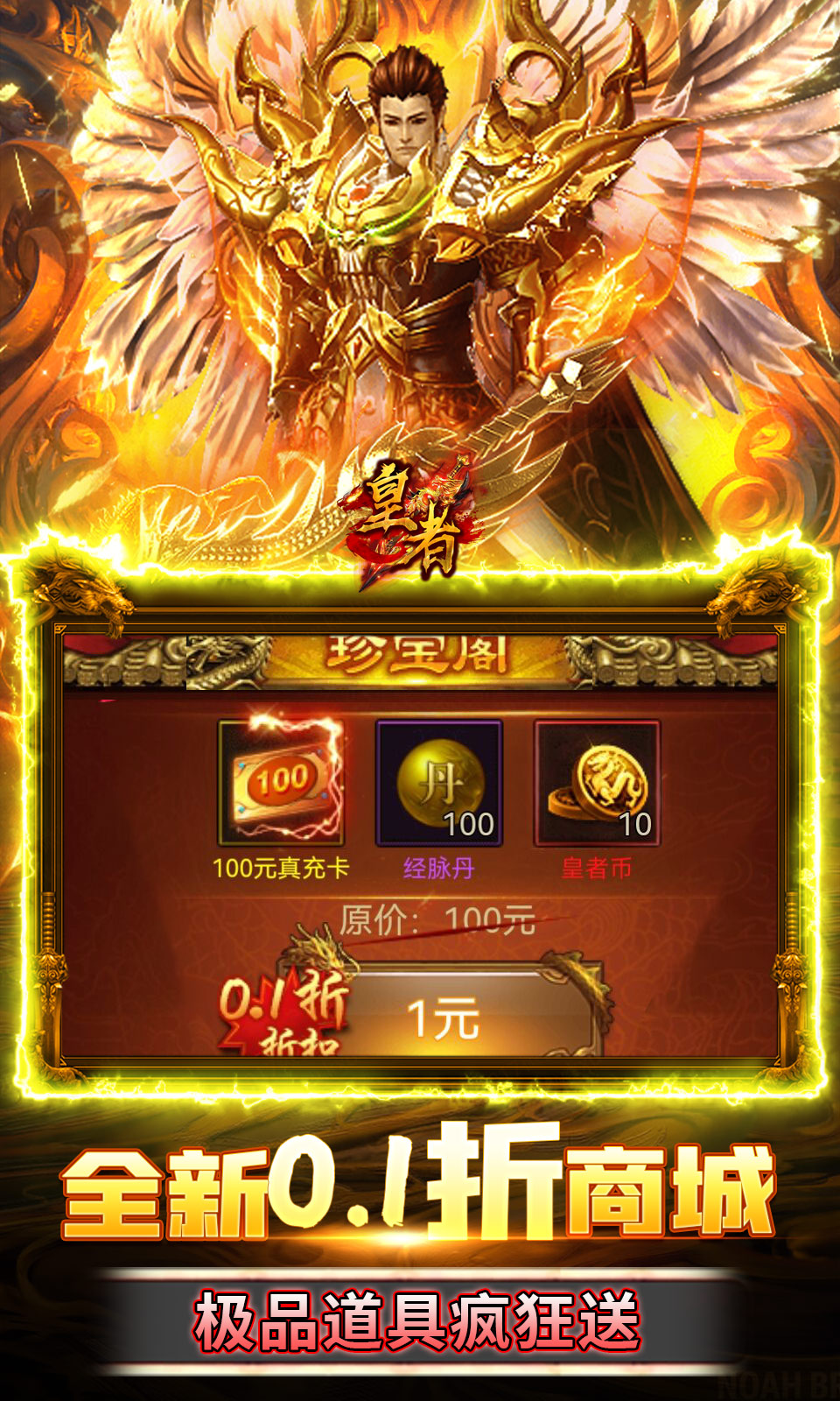 《皇者》是款经典挂机传奇,全新第四职业魔神来袭!上线送vip15,元宝*1000000,金币*10000万、绝版时装套,豪华资源轻松开局!全新版本解锁新姿势,GM手撸无门槛真点充,手速越快金额越高;内置0.1折大商城,所有道具百倍返利,最低0.1折购买!输入BUG指令,每日获得大量真充和升阶资源,GM提现红包系统每日领取大量现金卡!快来邀请你的好游一起来解锁船新的买断版本吧!