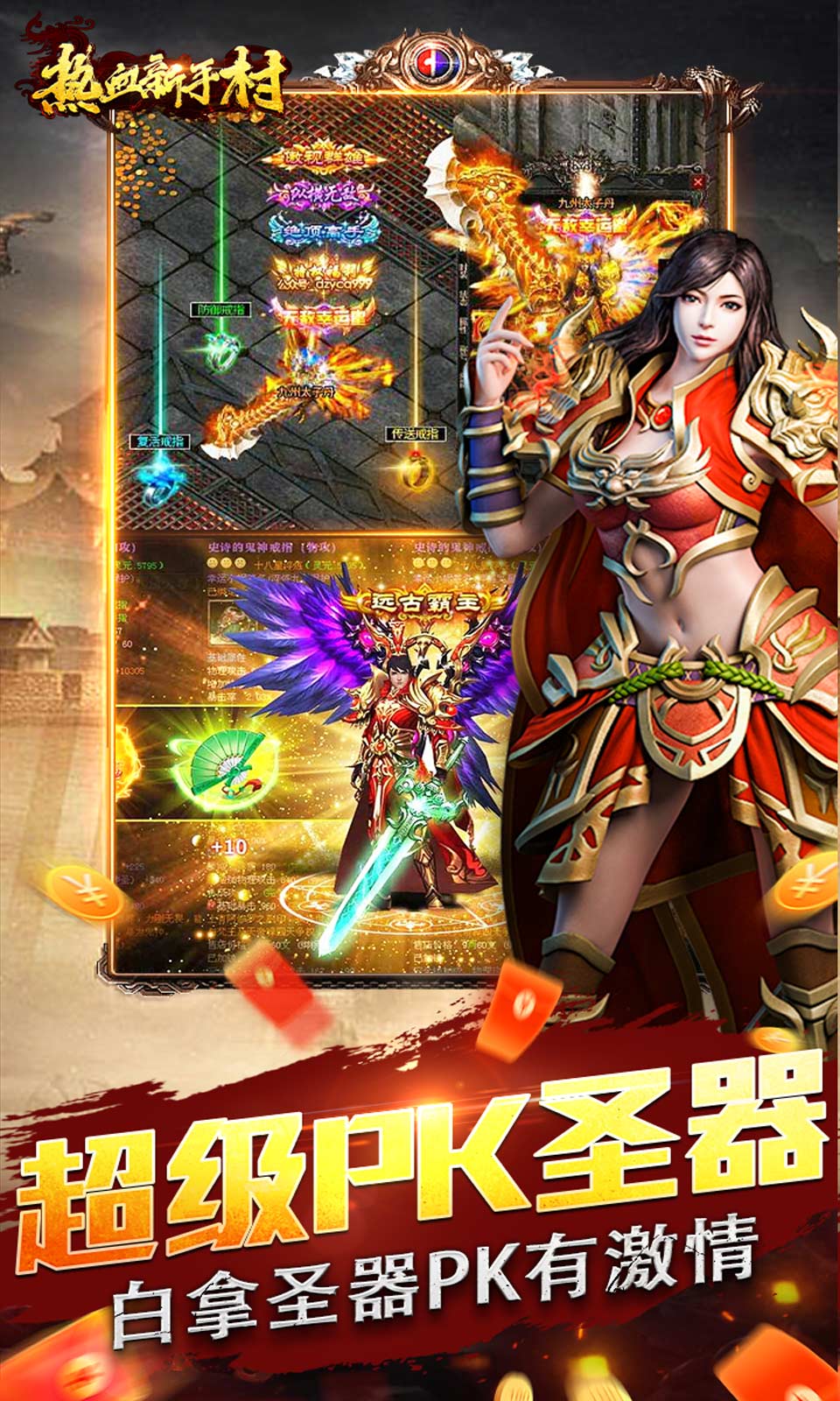 1、上线送爆率神装、极限攻速、吸血神器、冰冻神技等,超值福利领不停!2、充值比例1:1000,超高返利超高充值超级爽!3、万年魂环,百万累充玩全场,爆率超高,亿万切割,刀刀切割刀刀爆!4、白拿超级PK圣器,PK有激情,挂机无压力,超激情人气服!5、0元随便打,0元任挂机,无隐藏,打怪送一切,挂机当大哥!6、白嫖逆袭,散人的福音,免费抽奖,挂机无限抽500充值卡!