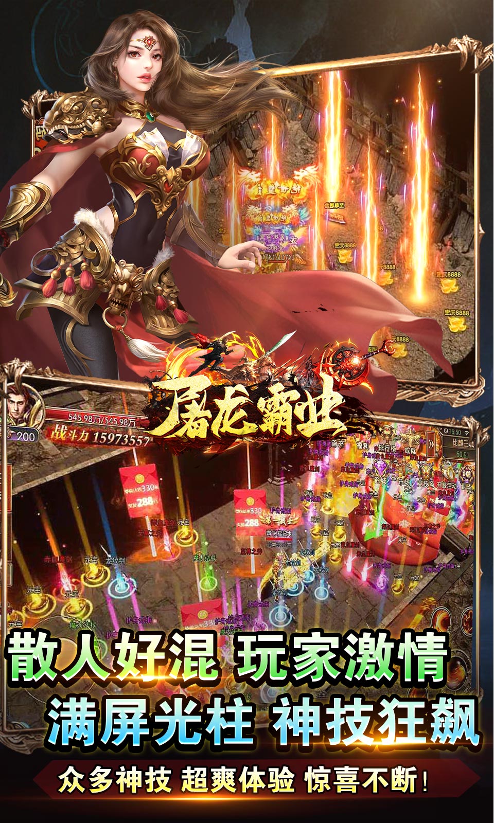 1、上线就送:自动拾物,自动回收,超大背包和三页仓库!2、七天扶持:送大量真实充值,不充钱也能体验充钱快感!3、在线奖励:每天上线可以领取大量材料跟充值货币!4、每日杀怪:送大量充值红包+VIP积分,VIP免费送!5、每个地图都有福利BOSS跟超级BOSS,真实充值跟货币大量爆,每天随便白嫖上千元充值!