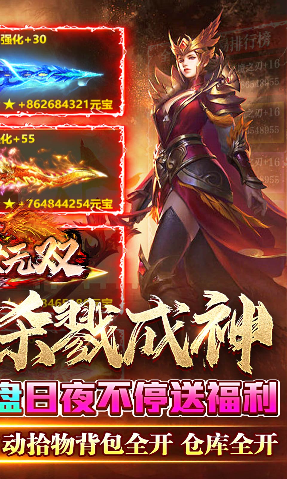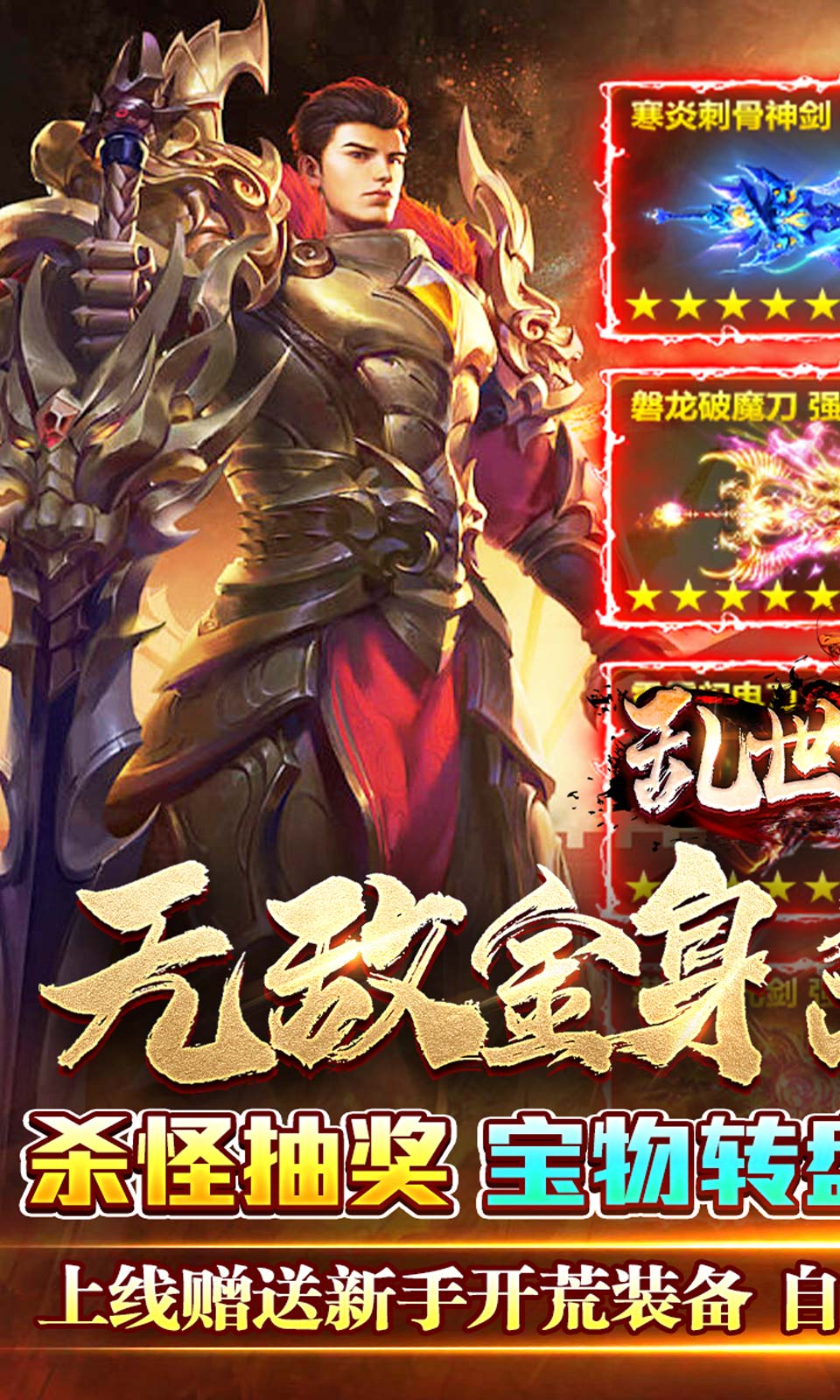 上线赠送新手开荒装备、自动拾物背包全开、仓库全开!杀怪抽奖,宝物转盘日夜不停送福利!!领悟最强奥义,做最强男人!无敌金身,杀戮成神!玄机洞天,仙人神技,魔幻精灵!