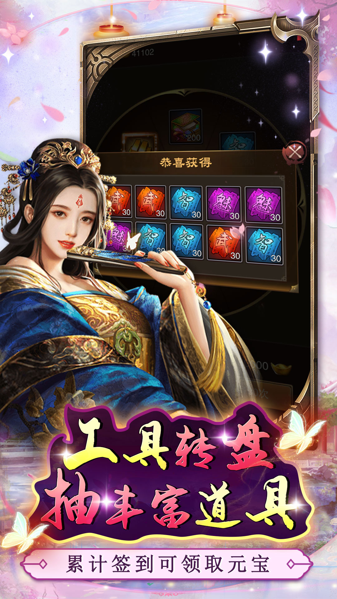 1.上线即送GM1,VIP奖励免费领取!2.每日签到,百万元宝等你来拿!3.次日登陆领阿九!初始魅力100!更有技能加成!4.超值特权,畅玩当托!5.首冲任意金额拿猛将“兰陵王”及其皮肤,助你一臂之力!6.无限资源阁一次激活,无限领取!