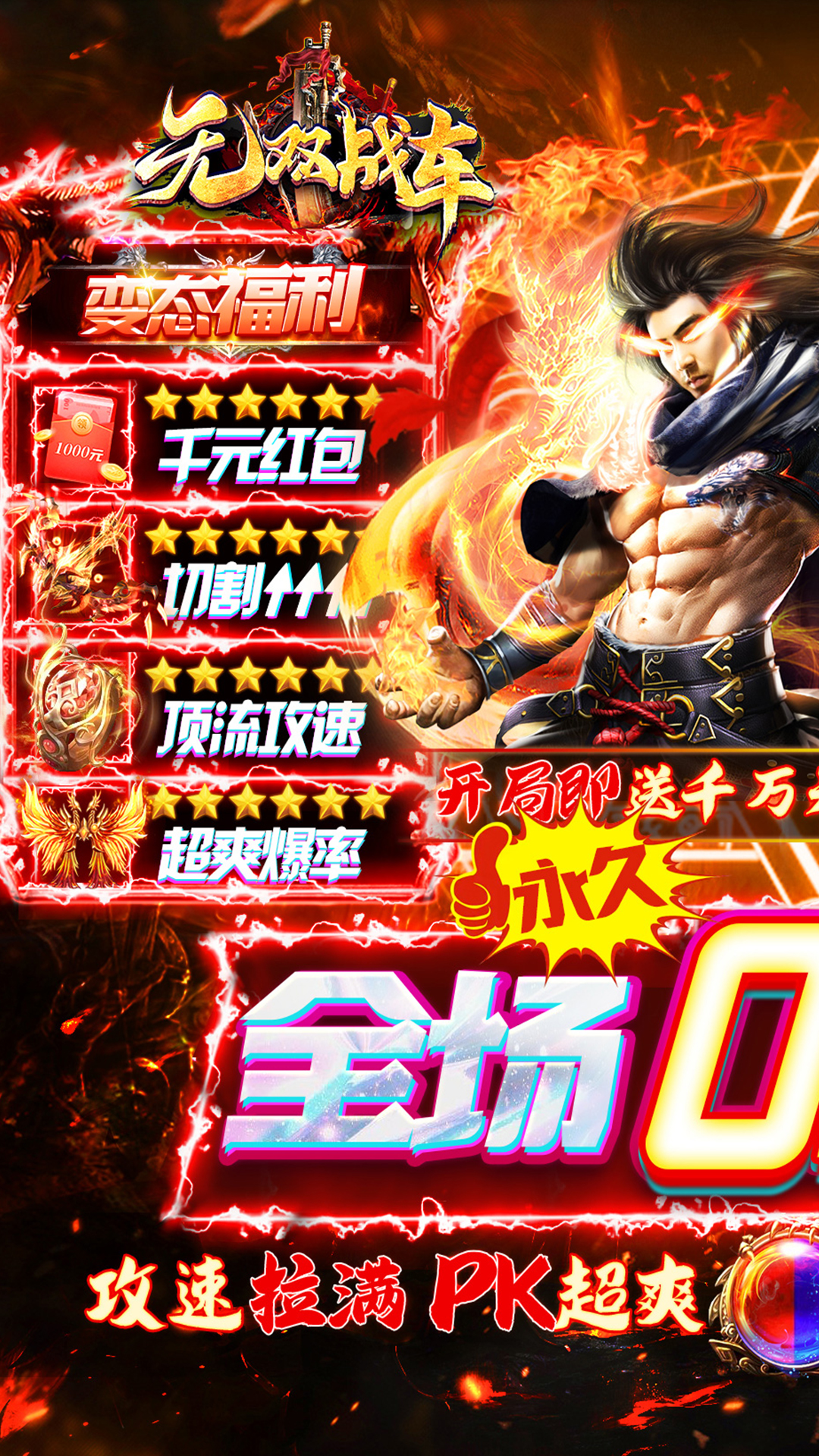 ★游戏全场充值0.1折福利★上线送1000W元宝、额外伤害翻倍(限时)30分钟、灵装一套(灵·彩蝶)、玄武丹*100、白虎丹*100、朱雀丹*100、青龙丹*100★万元顶级赞助上线免费领,战力飙升,爆率翻倍,回收更赚钱★充值比例1:1000,爆率全开,打怪掉落充值★超爽VIP特权,满级VIP全靠打,打怪即享尊贵特权★在线即可领取大量福利道具,天天送红包,可抵真实充值