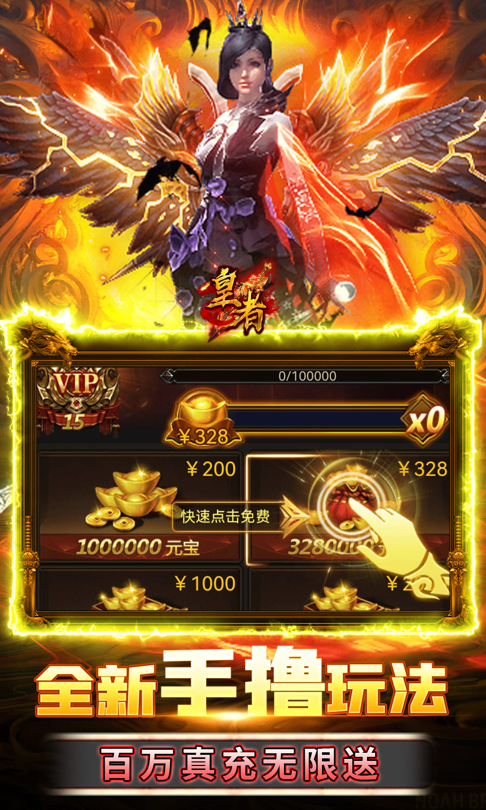 经典挂机传奇《皇者》是款深受百万玩家喜爱的高爆高福利游戏!上线送满vip15,百万元宝,绝版时装套!游戏内新增代金卷,可用于RMB进行抵扣,无需任何真实充值!绝对白嫖福利版本、全部免费无限送!福利全新升级,千倍投资,永久年卡超值豪礼领不停!同时带来全新玩法---亚特兰蒂斯,深海巨兽夺取海神神器,即可制衡新世界秩序,空间之门即将打开,迎来新的腥风血海!快唤回曾经的兄弟们一起战斗吧!荣耀归来,再创传奇!