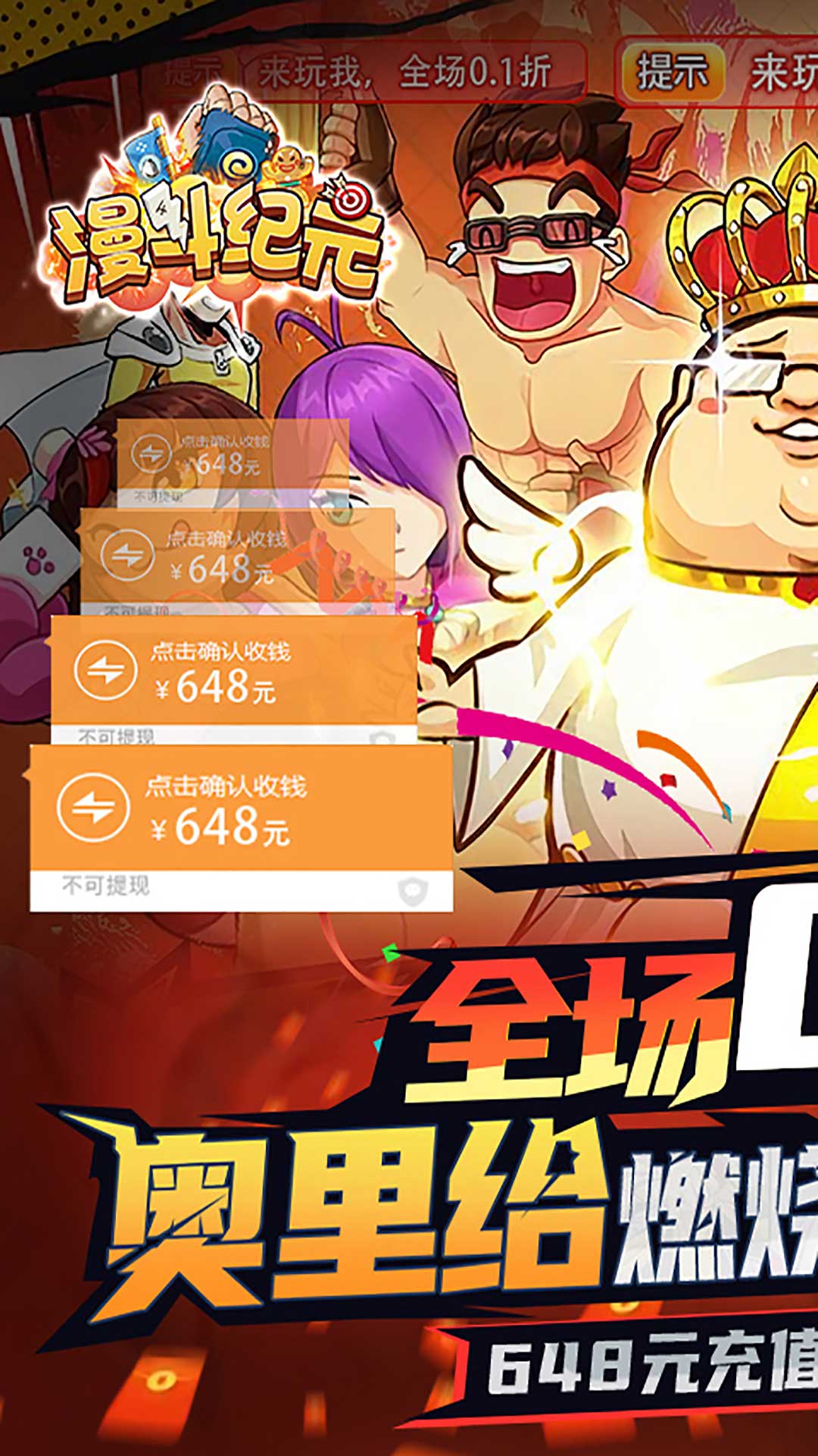 《漫斗纪元(0.1折扣服)》是一款全明星魔性激斗放置手游,一经推出便获得玩家好评如潮,成为千万粉推年度最受欢迎手游。画风贱萌剧情爆笑,全明星二次元主角独家养成,超豪华阵容由你任性操控,更有合体技脑洞大开震撼爆屏,众多乐趣无法言语只能亲身体会!一起走进全明星大乱斗的奇妙世界吧!