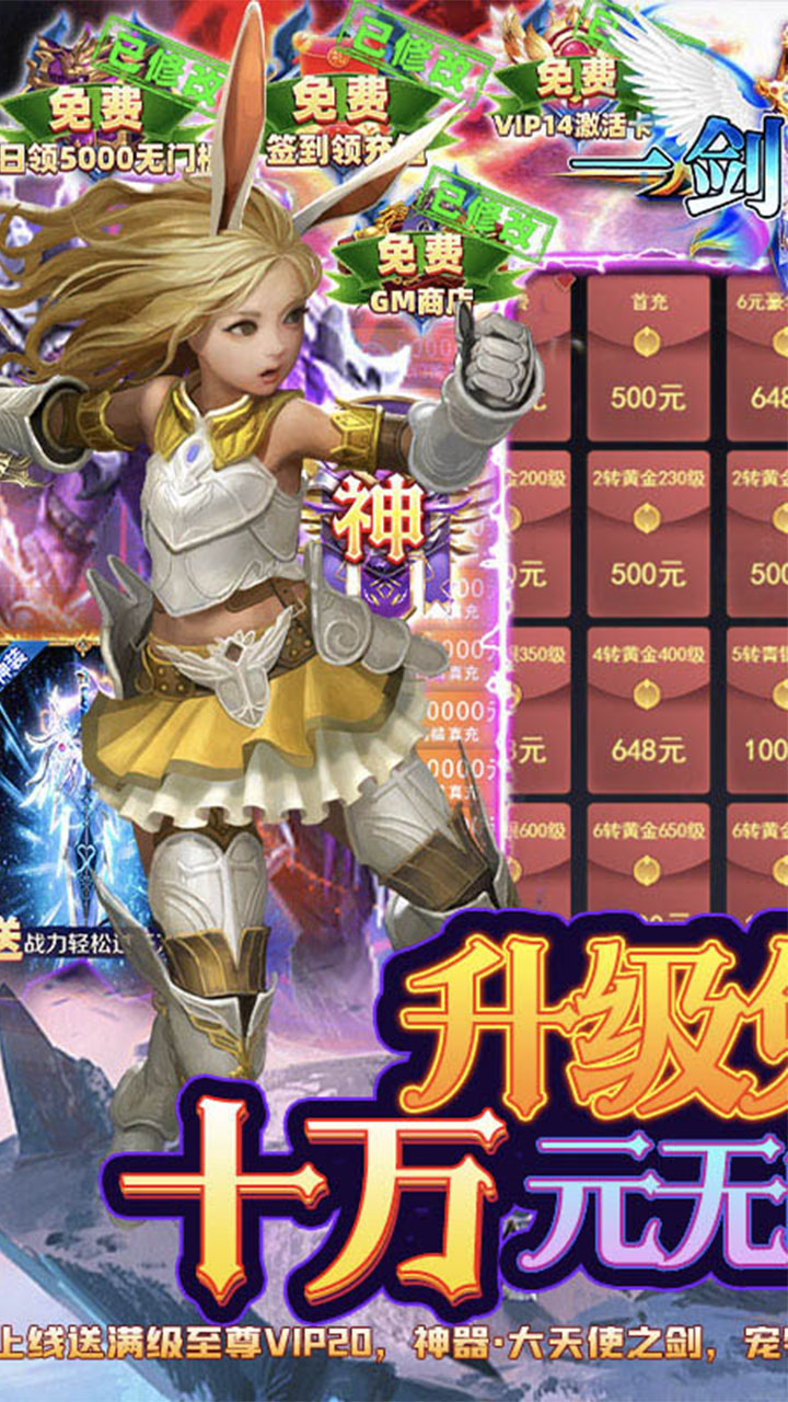 ¡ï¡¾Ê®ÍòÕæ³ä¡¿Éý¼¶Ãâ·ÑÁìȡʮÍòÔªÎÞÃż÷Õæ³ä¿¨£¡³¬Ç¿Õ½Á¦ÌáÉý£¬ÎÞÓdz©Í棡¡ï¡¾´´½Ç¸£Àû¡¿ÉÏÏß¼´ËÍÖÁ×ðVIP14£¬10Íòºì×ê¡¢300ÍòÀ¶×꣬ÉñÆ÷·´óÌìʹ֮½££¬³èÎï»Ã»¯·Ñ©ÈË£¬ÍòÔªÕæ³äÀñ°ü£¬Õæ³ä¿¨Ë鯬ÀñºÐ£¡¡ï¡¾GMÉñ×°¡¿ÔÚÏßËÍÂú¼¶ÖÁ×ðVIP20¡¢GM2É̳ǽâËø¿¨¡¢Ò»Ì×GMÉñ×°¡¢7½×¾«ÁéÊ÷ÈË¡¢1000WÕ½Á¦¼«Æ·»Ã»¯±¦Ï䣡¡ï¡¾Ãâ·Ñ³äÖµ¡¿Ã¿ÈÕ¿É»ñµÃ3´Î½ðÊÖÖ¸ÌØÈ¨£¬Ã¿´Î×î¸ß¿ÉË¢3±Ê648Ôª³äÖµ£¬Ã¿ÌìÀÛ¼Æ×î¸ßµÃ5832ÔªÕæÊµ³äÖµ£¡¡ï¡¾ÐÒÔËתÅÌ¡¿ÀÛ¼ÆÔÚÏßËͳ齱´ÎÊý£¬³éÈ¡Õæ³ä¿¨Ë鯬ºÍ¼«Æ·²ÄÁÏ£¬Õæ³ä¿¨