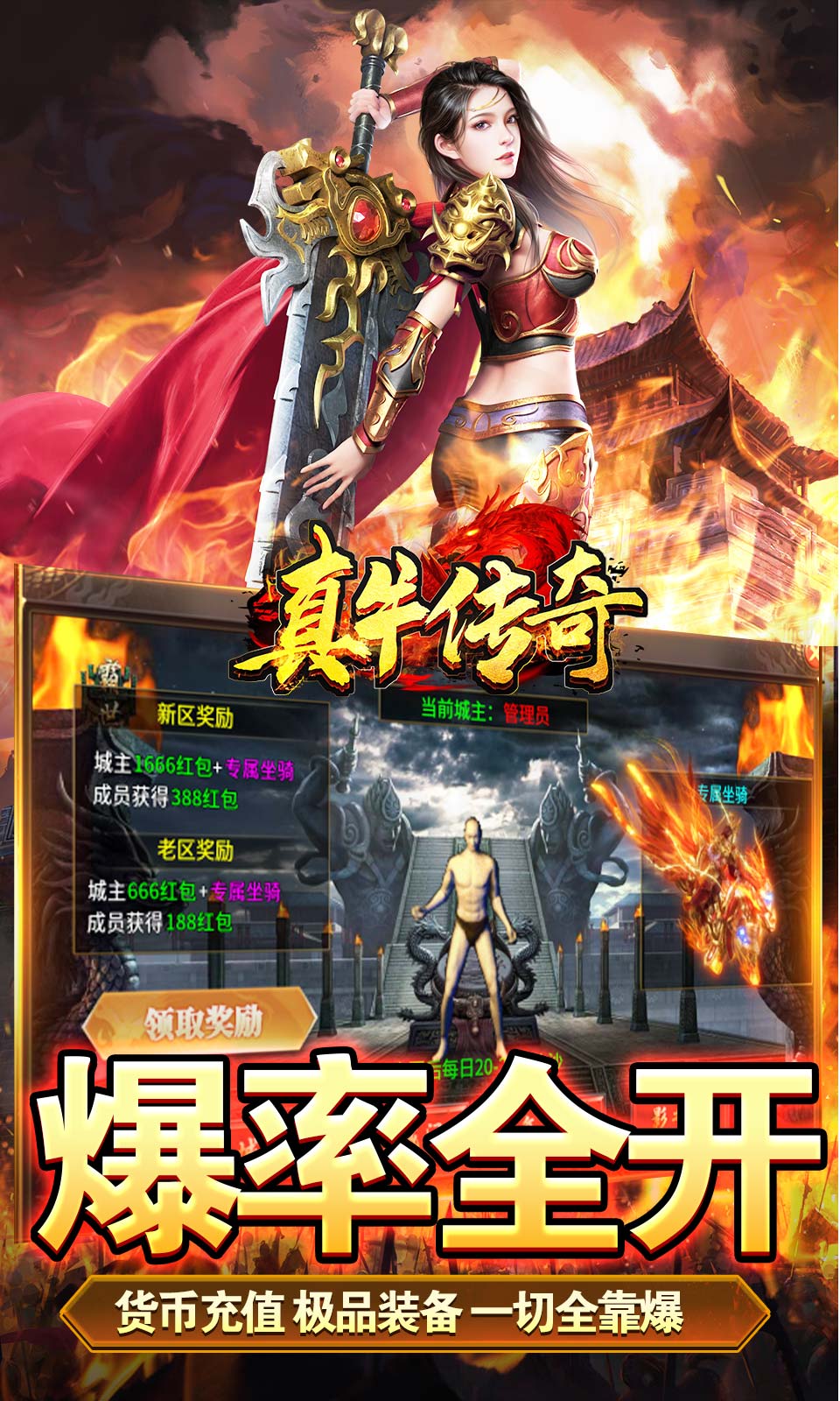 真牛传奇(送充超变专属),全新超变专属光速刀版本,上线送充值,首冲礼包,直购礼包!范围群体切割,送强力专属装备,暗藏专属属性,超级攻速,自动回收,范围捡取!超高爆率!刀刀切割,助你砍遍全图!炫酷坐骑系统,全新地图,超多隐藏福利等你来领,活动boss无限刷!充值货币无限爆!准点攻沙,等你来战!全新超变神器光速刀福利版本来袭!还在等什么,快来加入吧!
