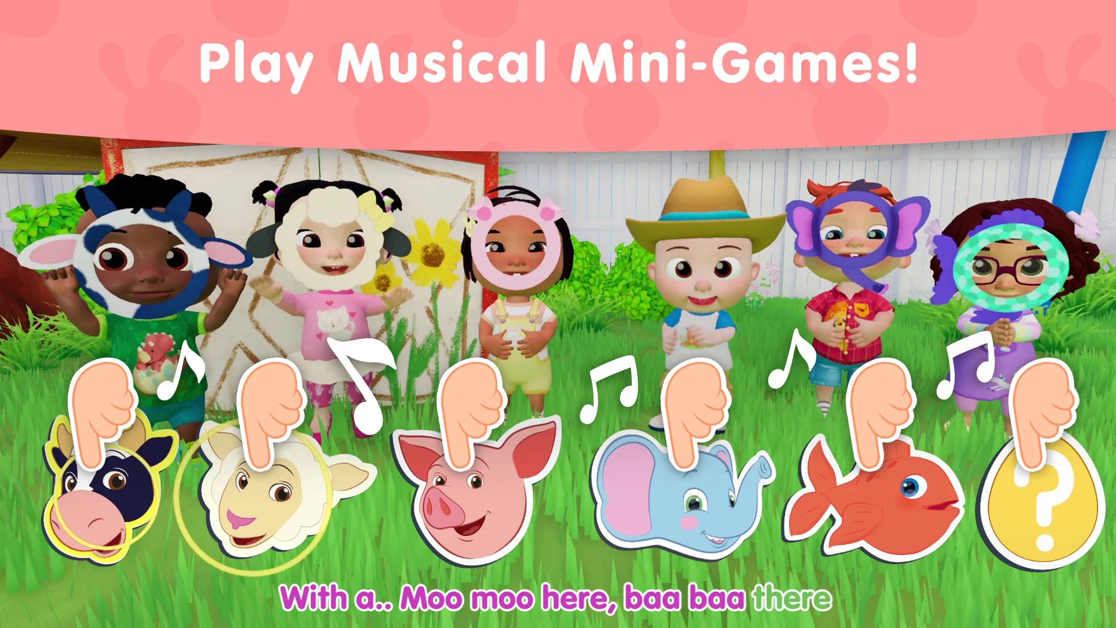 欢迎来到可可瓜儿歌的世界,你和家人受邀来到 JJ 的家里一同玩耍。点击每个房间里的互动物品,即可发现有趣的惊喜,不仅有可供探索的隐藏玩具、可以画的图、可以制作的作品,还能一同欢唱“Wheels on the Bus”和“Yes Yes Vegetables!”等可可瓜儿歌。