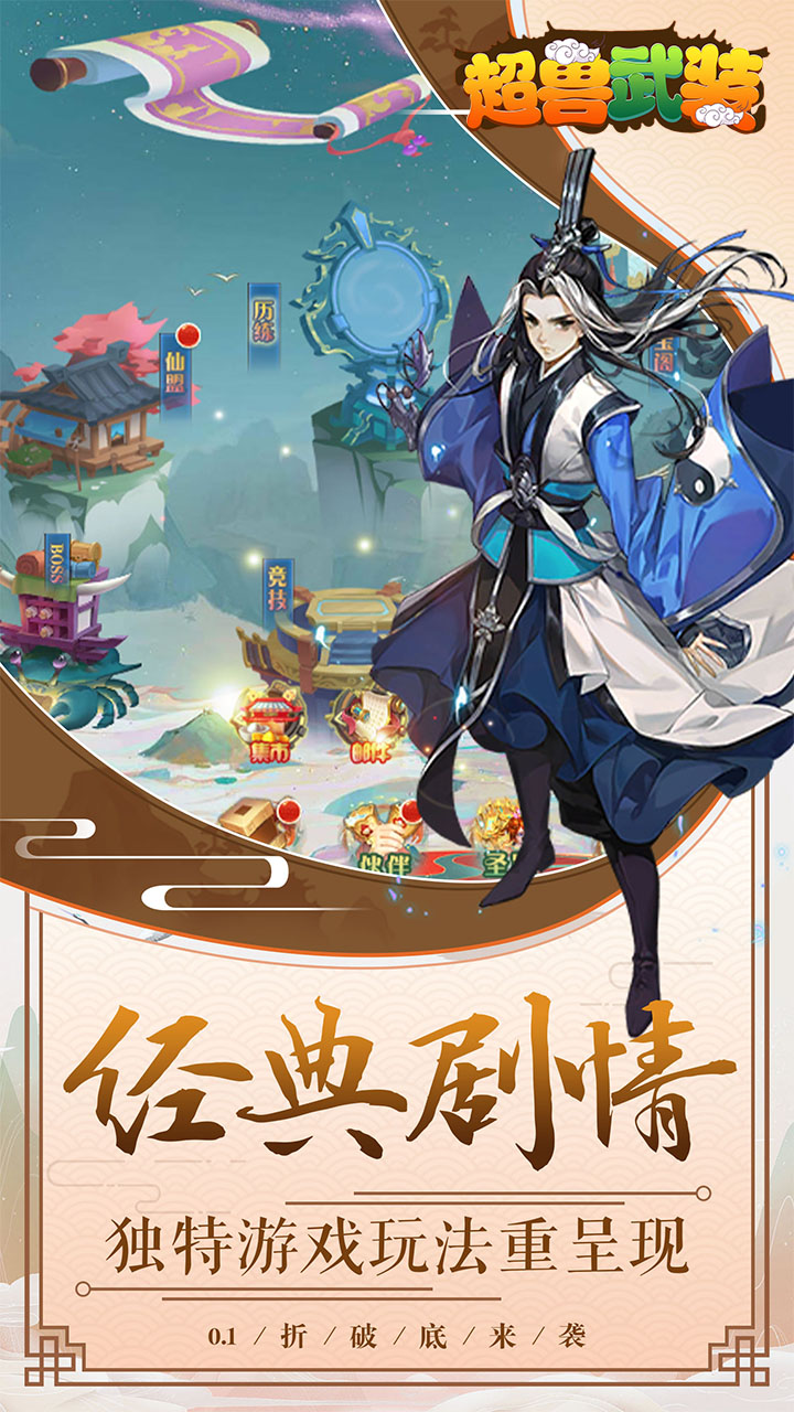 《超兽武装(0.1折福利版)》是一款Q版回合制游戏。开局就送VIP10、橙宠·吸血鬼王、神魔令牌*100、元宝*100万、银两*1000万!主线任务无限获取抽奖券,通章免费领取直充卡!精美2D的Q版人物设计,搭配传统神话故事剧情,实力打造精品回合制经典!酷炫坐骑共同潇洒三界,独有万千道具自由回收,多样经典回合玩法无穷乐趣!