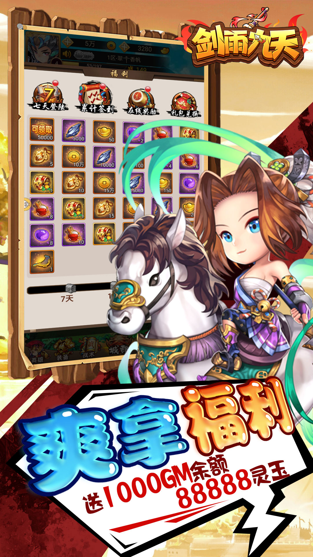 1. 上线送3280元宝,50000铜钱,100寻宝卷轴,300生魂石,150镇魂石,80灭魂石,40转魂石,100宠物饲料,10木质宝箱,5铜质宝箱,2银质宝箱, 50扫荡卷,10青木星石宝箱,5玄铁星石宝箱,2金饰星石宝箱……等等2. 激活首充送等级经验,快速升级,战力飞速提升;还可以购买特权、投资、礼包等等3. 每日在线60分钟,送3800元宝,连续签到每日送1000元宝,做新手任务,通关关卡都送上万元宝,还有珍稀道具相送4. 登录