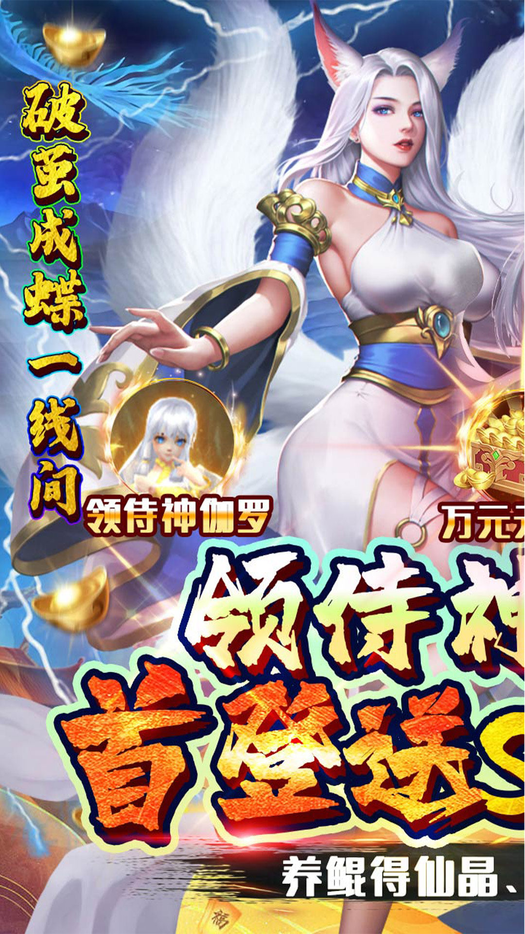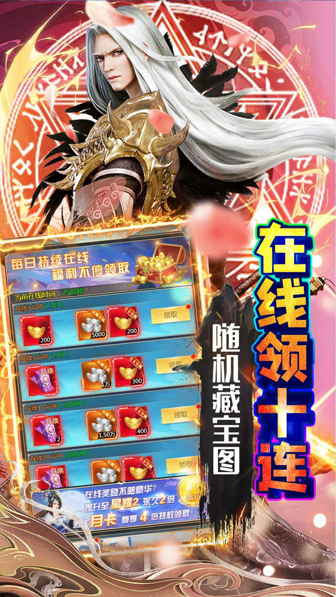 首登赠福利:SVIP10、万元充值卡、时装-初入仙途、伽罗-侍神七日豪华礼:从登录第一天起可领取海量元宝,奖励每日不重样,第七日直领SSR无人机在线领十连:每日持续在线,直送召唤卷轴*15,更有藏宝图随机掉落稀有道具闯关大奖赏:闯关掉落98代金券,通过特定关卡还有召唤卷轴可领取每日一签到:每日签到可领取两张天命赐福,每五天可领取SSR召唤符碎片。累签20天直领圣兽妖魄
