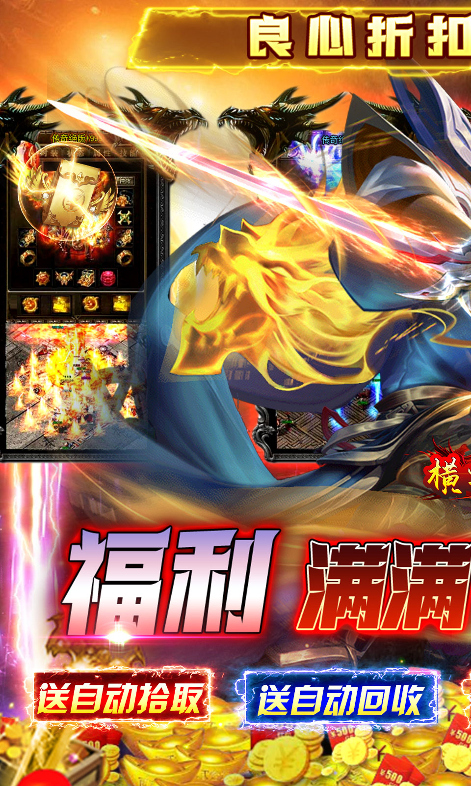 1、登录在线即可白嫖全部爵位,激活自动拾取和自动回收,解放双手挂机无忧。2、实物兑换:本服任何怪物均可爆出实物,实物点可兑换钻石,直接白嫖至顶级!3、白嫖充值:在指定大陆击杀指定数量野怪,可免费白嫖百元充值卡,没有我们不敢送!4、回馈礼包:充值即可获得回馈点,可额外领取海量高级道具及百万元宝!5、三大目标:等级转生杀怪三目标,可白嫖百元充值卡,百万元宝更有海量道具,这么良心的服你确定不玩儿吗?6、炫酷装扮:群攻、追尾、环绕、魂环、骑乘、羽翼,超多炫酷华丽装扮等你来激活!!