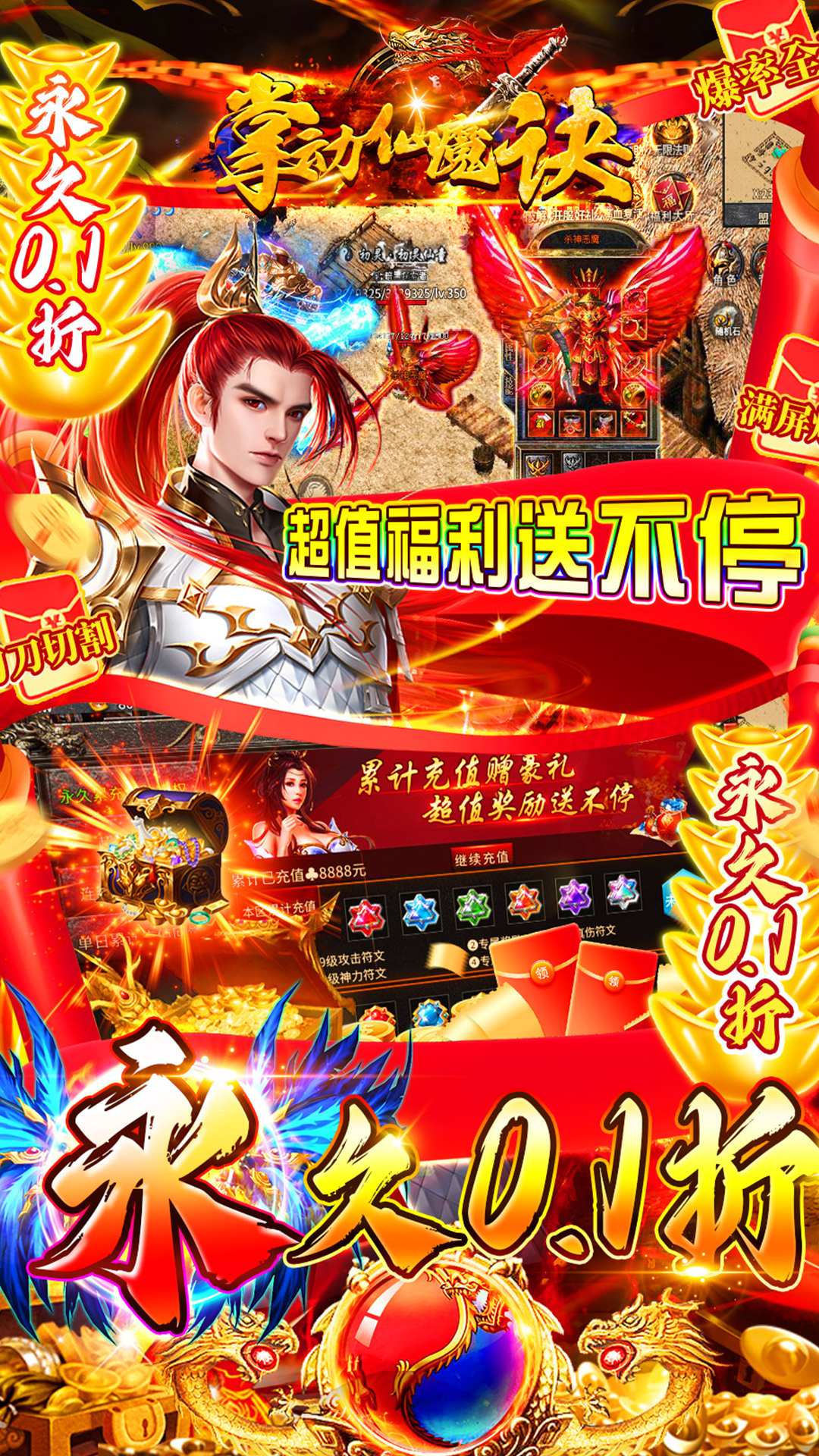 《掌动仙魔决》全网首发,重磅登场!纯正0.1折传奇,上线立即送8888赞助红包,游戏内更是设置了内购破解充值,破解后可无限充值钻石!还有炫酷的全屏技能,秒天秒地。还送500%攻速,光速拔刀,刀刀暴击刀刀倍攻;还有专属觉醒技能,随时随地觉醒变身;