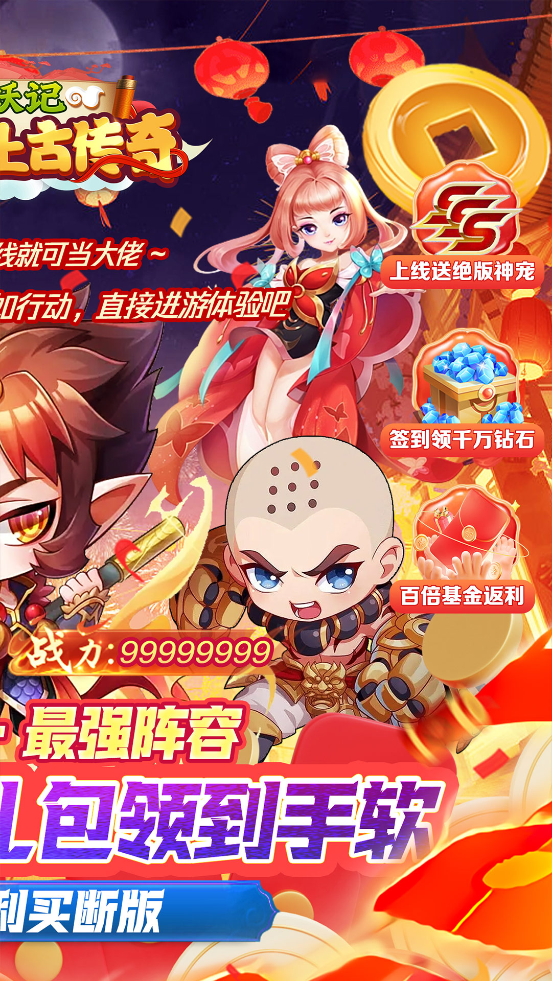 ★开局送VIP7+直升50级+50万金币3万钻石+648充值资源拿到手软★上线3分钟免费送绝版神宠★在线签到豪取千万钻石★独家在线任务白嫖神器幻化,首充0.08元拿极品橙宠.黑悟空★独家0元免费礼包拿不停★百倍成长基金返利嗨翻天