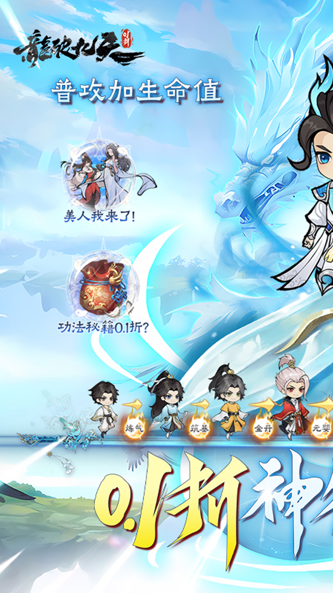 《龙破九天(0.1折神符修仙)》一款超休闲自动挂机,疯狂打怪爆装备的修仙游戏,游戏里可以打怪爆出不同品质的海量装备,收集神装成为修仙界最靓的仔,还可以收集皮肤,剑灵,异兽,斗技,神通,天赋种种特殊系统,0.1折版本让你更快的突破新的战力高度助你征战仙界,成为前无古人后无来者的仙界至尊