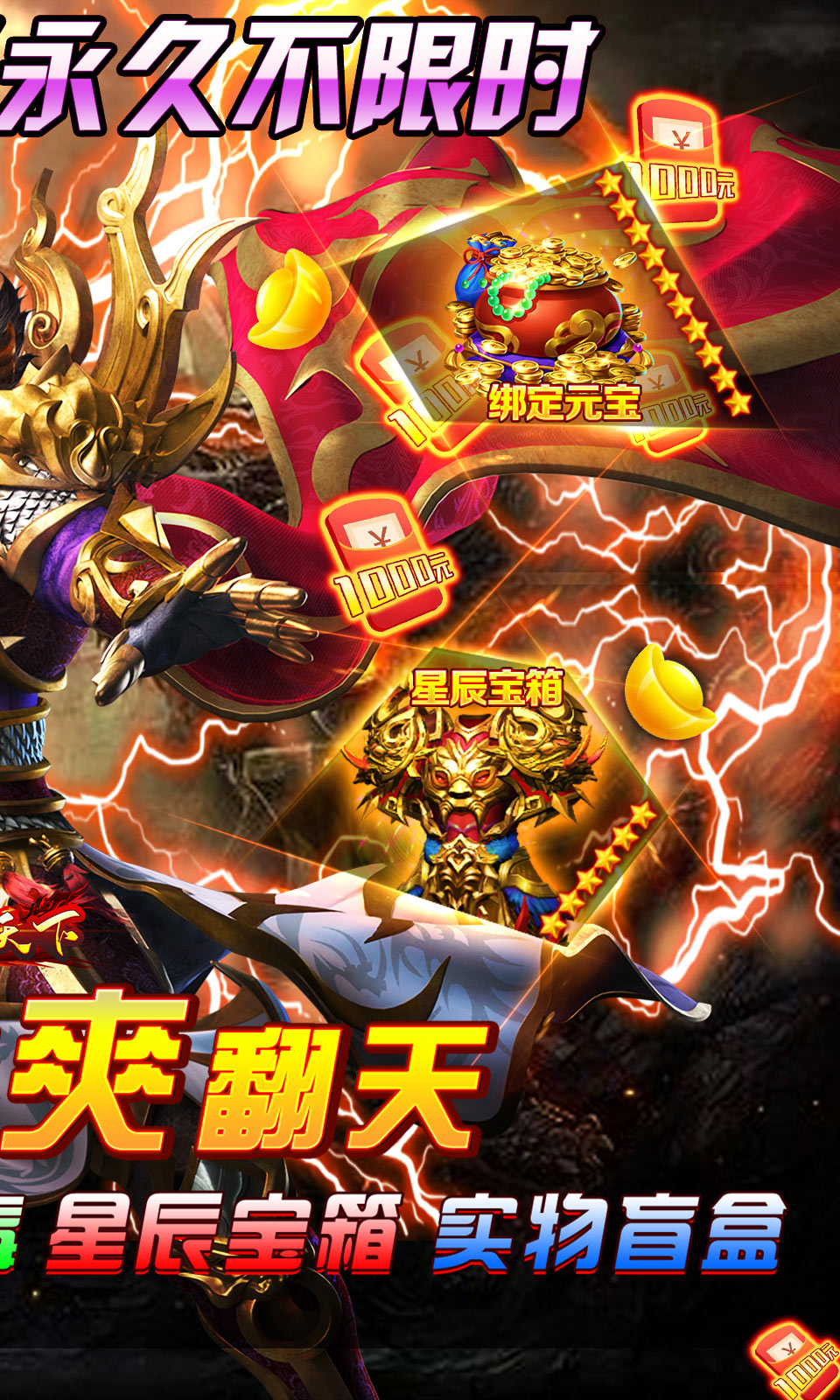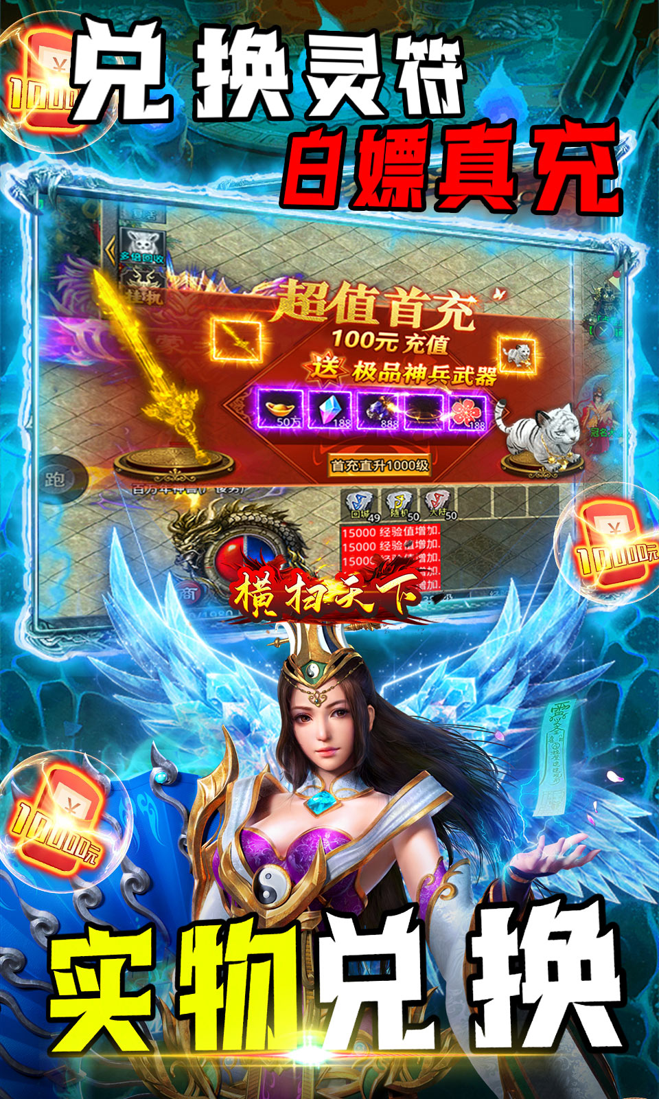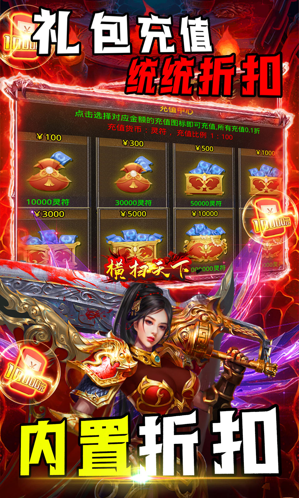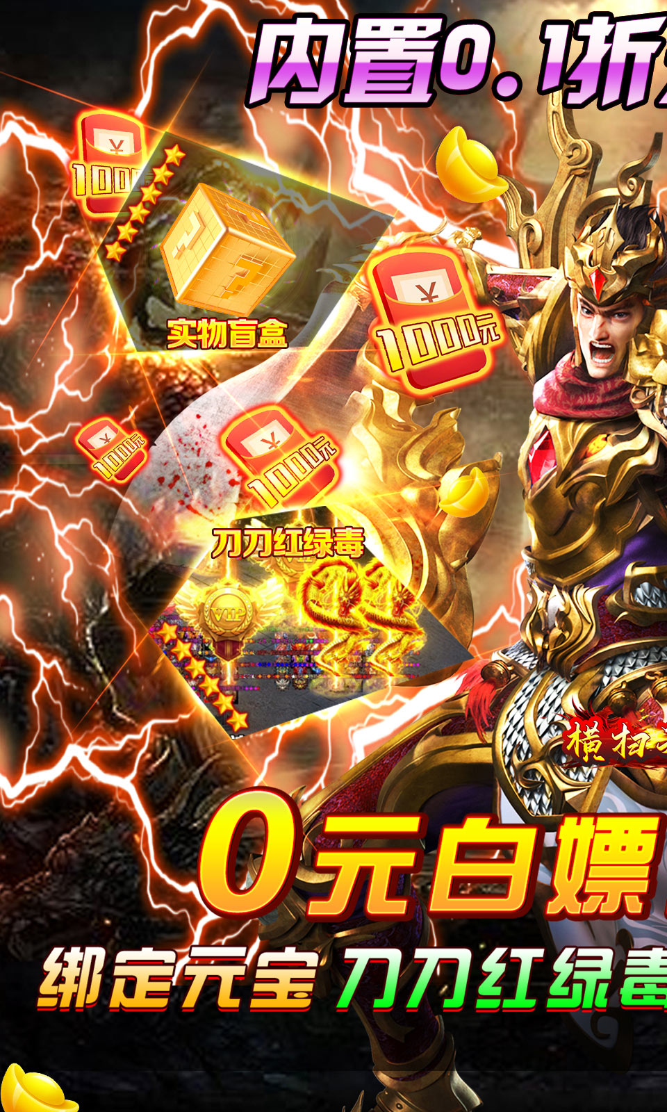 《横扫天下》内置0.1折永久不限时,不玩儿虚假,没有倒数!创角即送元核星辰宝箱*3、魂环紫阳真气,起步开荒装备六件套,新手礼包登录即可领取,更有刀刀红毒绿毒,逐日剑法和开天斩,超变超爽的游戏体验,超级大乐透,新增超级大乐透,抽奖100%中奖!必可随机获得珍贵材料和珍惜道具!积攒抽奖次数还可领取超强属性称号!