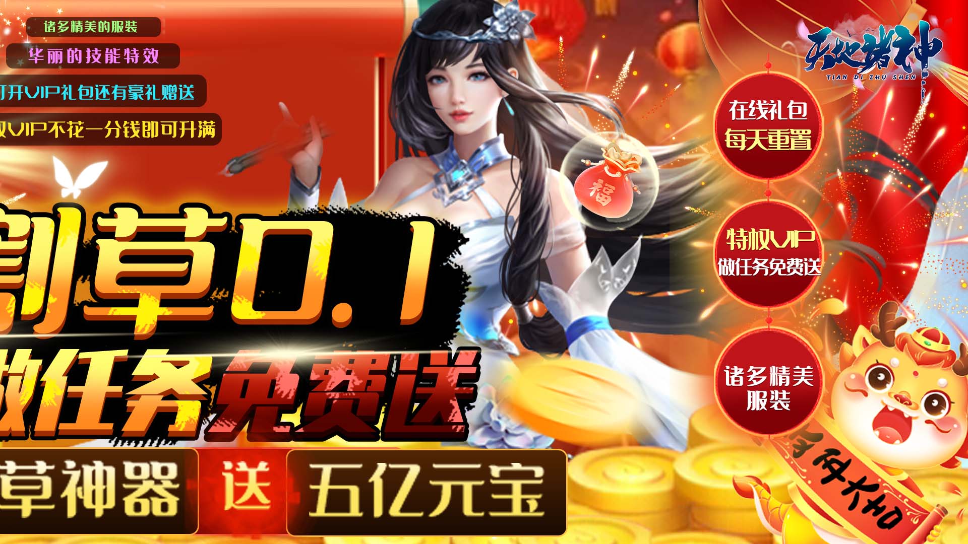 福利1:创角就赠送至尊4,价值千元的至尊VIP礼包免费领取!福利2:特权VIP不花一分钱即可获得,VIP礼包里还有豪礼免费赠送!福利3:上线即送海量元宝,更有绝版称号免费送!福利4:七天签到领割草神器,每天割草领取材料!