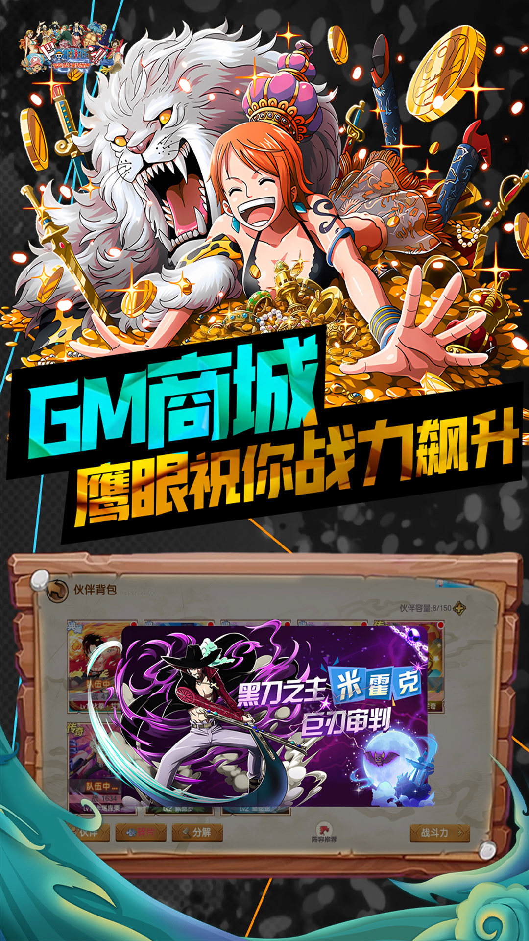 1、满星典藏阵容免费送,明天上线参与抽免单2、免费GM免费领,GM余额无限刷,想充哪里点哪里3、开局送典藏伙伴碎片任选包*400,1元真充卡*1000,罗杰的外套*1,高级努力币*10,钻石抽卡劵*100,贝利*1888888,钻石*888888,SVIP10 4、GM破解礼包,海量超强伙伴免费领,更有超多材料资源享不停5、超还原海贼卡牌手游,白嫖也能做大佬6、新的伙伴全新征程,体验优化,日常产出提升,全新体感...
