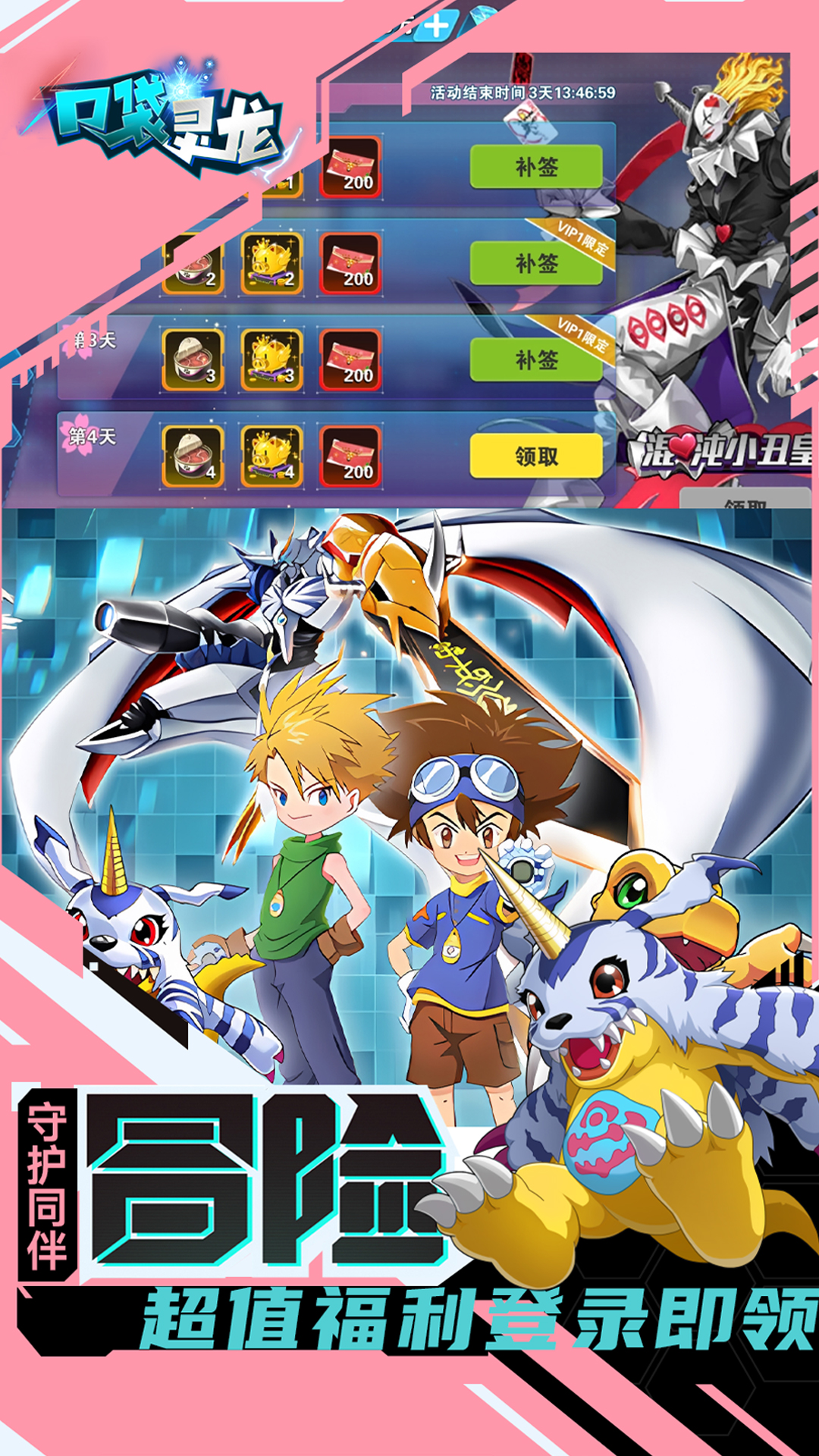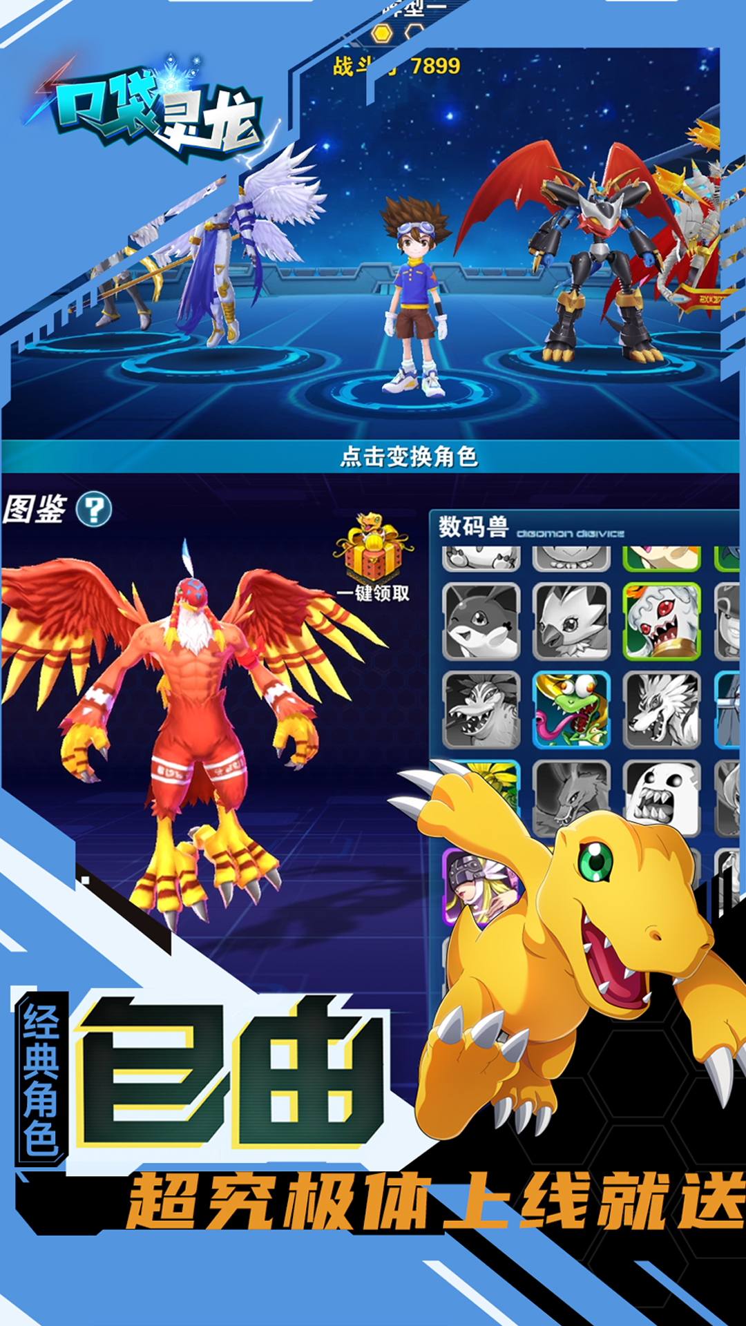 创角即送VIP20、GM刷充特权、专属礼盒,杰斯兽(超究体),无门槛免费刷充,更有百万真充等你来拿,快来开启数码大陆的奇幻冒险吧!