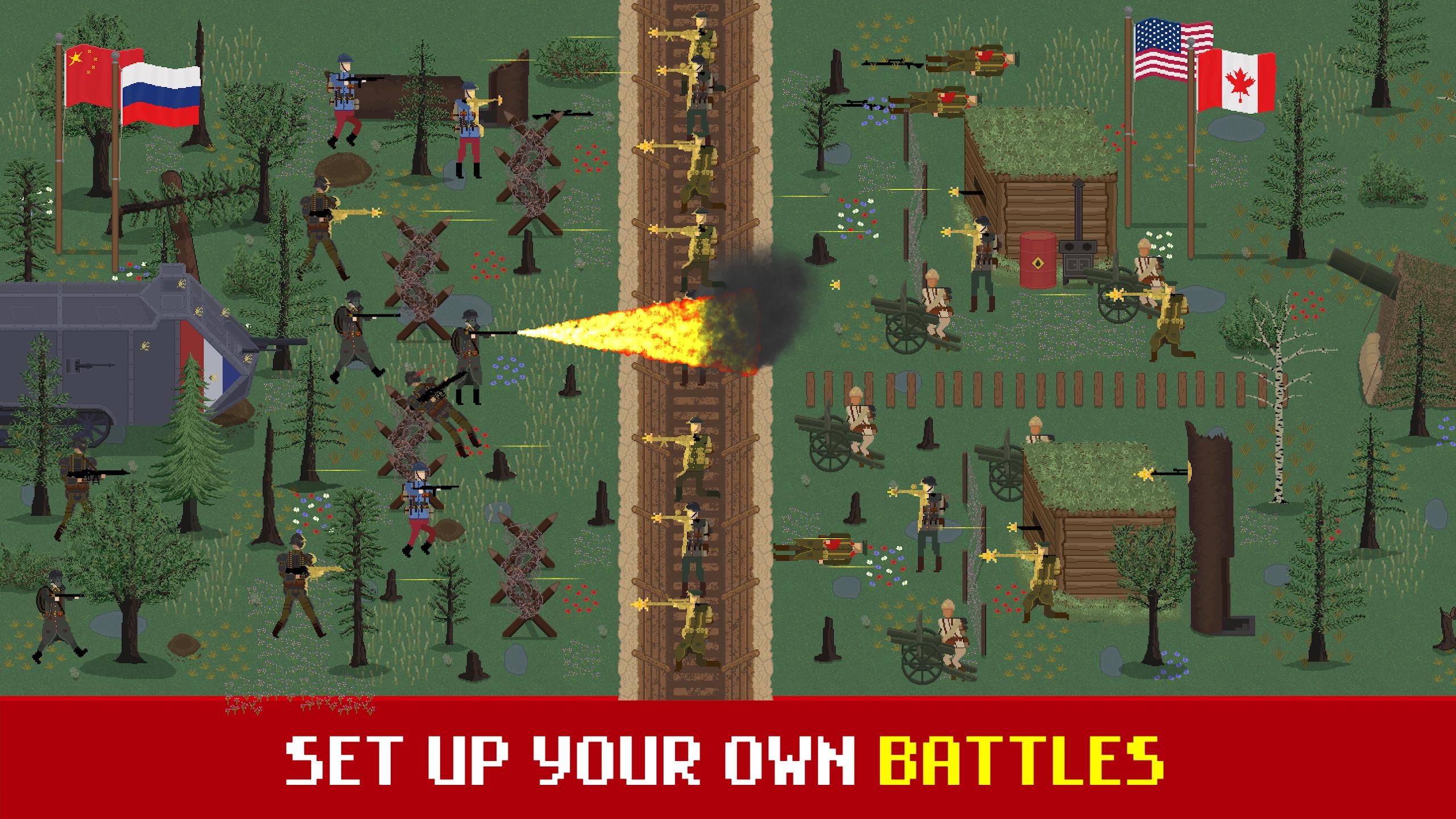模拟历史上的任何战争,并选择来自世界各地许多国家的各种国旗。创建自己的第一次世界大战,第二次世界大战,越南战争,美国内战以及更多场景!发挥创造力,模拟著名的历史战役,例如斯大林格勒战役、滑铁卢战役、柏林战役、D 日战役、敦刻尔克战役、葛底斯堡战役、索姆战役、凡尔登战役或加里波利战役。你的战争部队会带领你走向胜利吗?