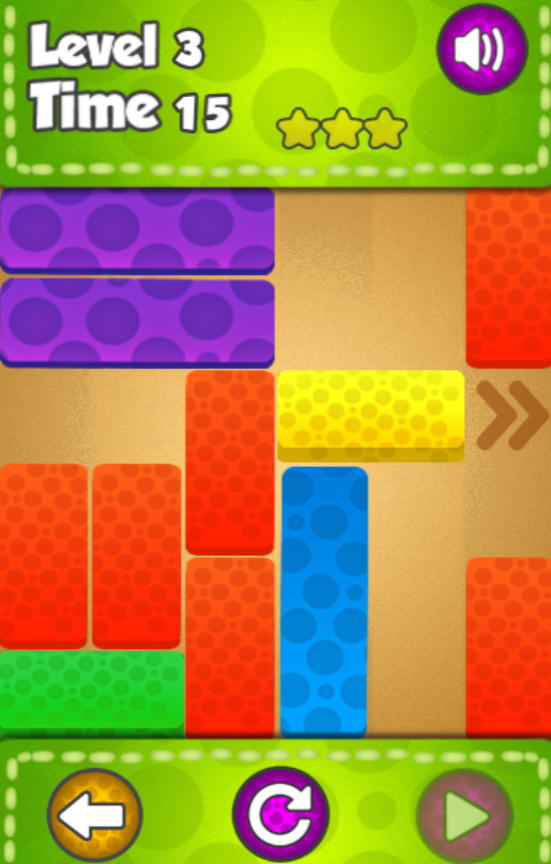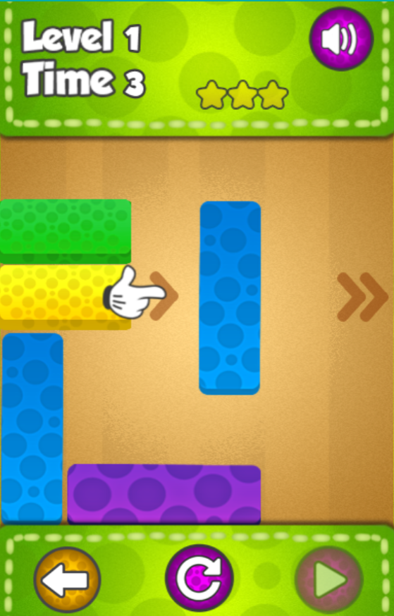 用你的大脑和滑块将黄色方块从板中取出。尽你最大的努力解决阶段,获得三颗星!