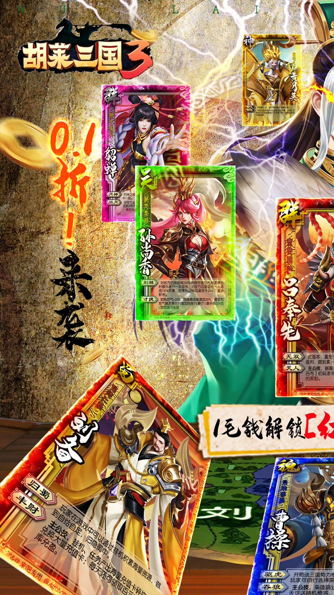 《胡莱三国3》是一款创新3D沙盘国战手游,继承4亿用户的经典“胡莱IP”,集卡牌养成及SLG玩法的精髓于一体,为广大玩家展现了一部气势恢宏的国战争霸史诗! 这是一部令人捧腹的三国歪传,每个人物的介绍都被赋予了全新的解读。 这是一部前卫的“新国风”三国,画面色彩的使用大胆超前,人物造型写意而夸张,细微之处无不透露着地道的东方韵味。 这是一部突破传统的三国手游,一款游戏让你尽享武将搜集、养成、策略征战等多种玩法的乐趣,更具开放性和自由性的功能设置,只想让你知道:“胡莱十载,不忘初心!运筹帷幄,制霸三国!!
