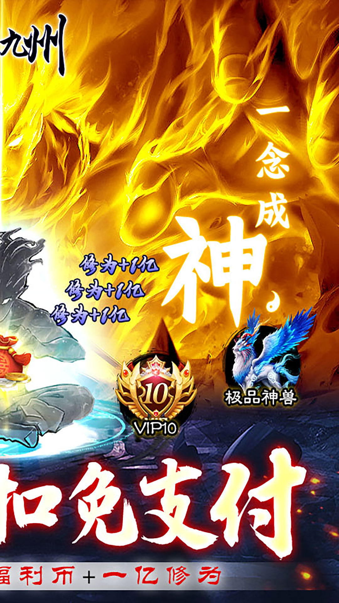 《神创九州(余额抵扣免支付)》是一款修真风格的高自由度的放置游戏,全新龙年版本开局就送充值,独立战区,飞仙抢榜前十名总共送出10000元充值卡,先到先得,更有法相、逆天神丹等你来拿!