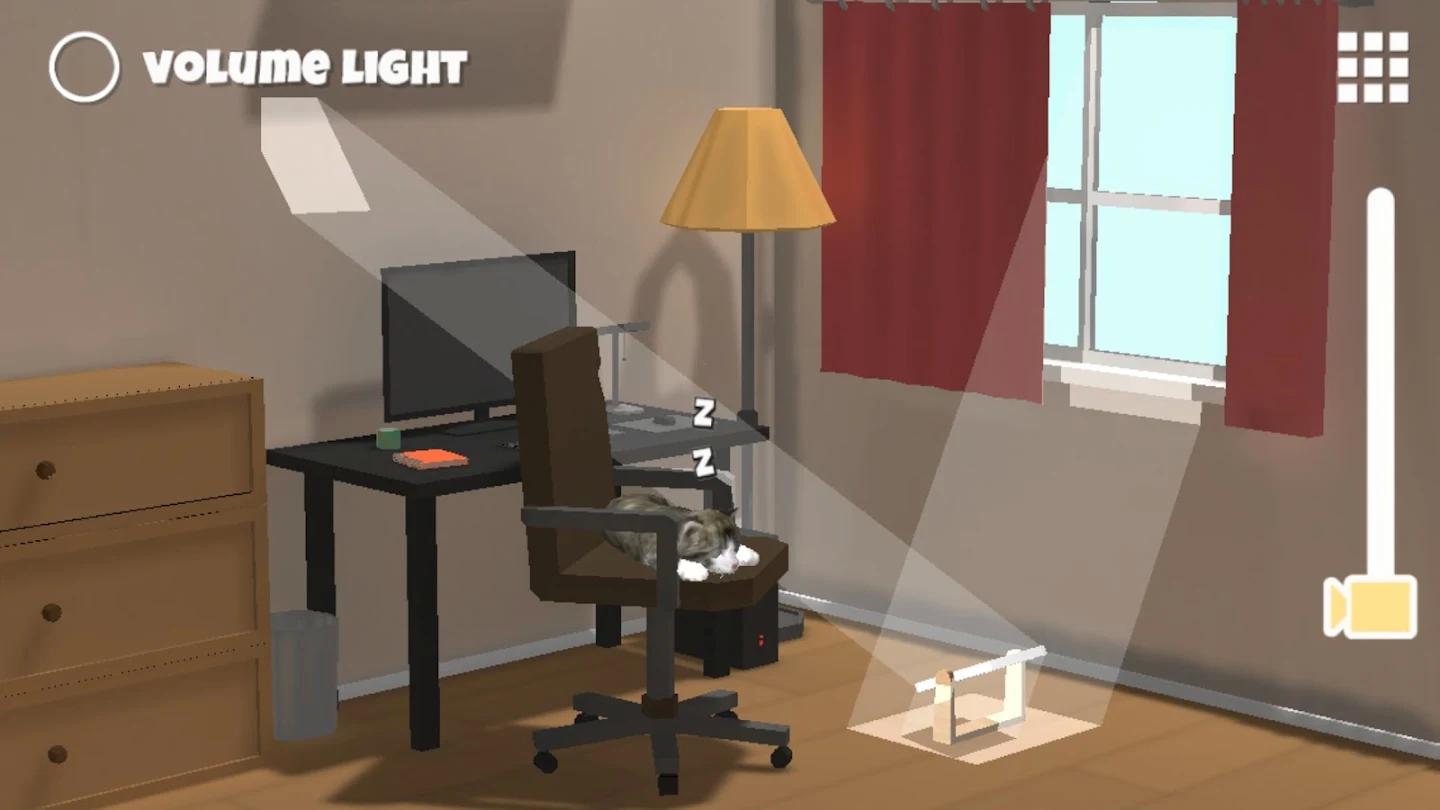 这是一款有趣的解谜游戏,通过放置镜子将光线反射到合适的方向,去唤醒睡觉的小猫。