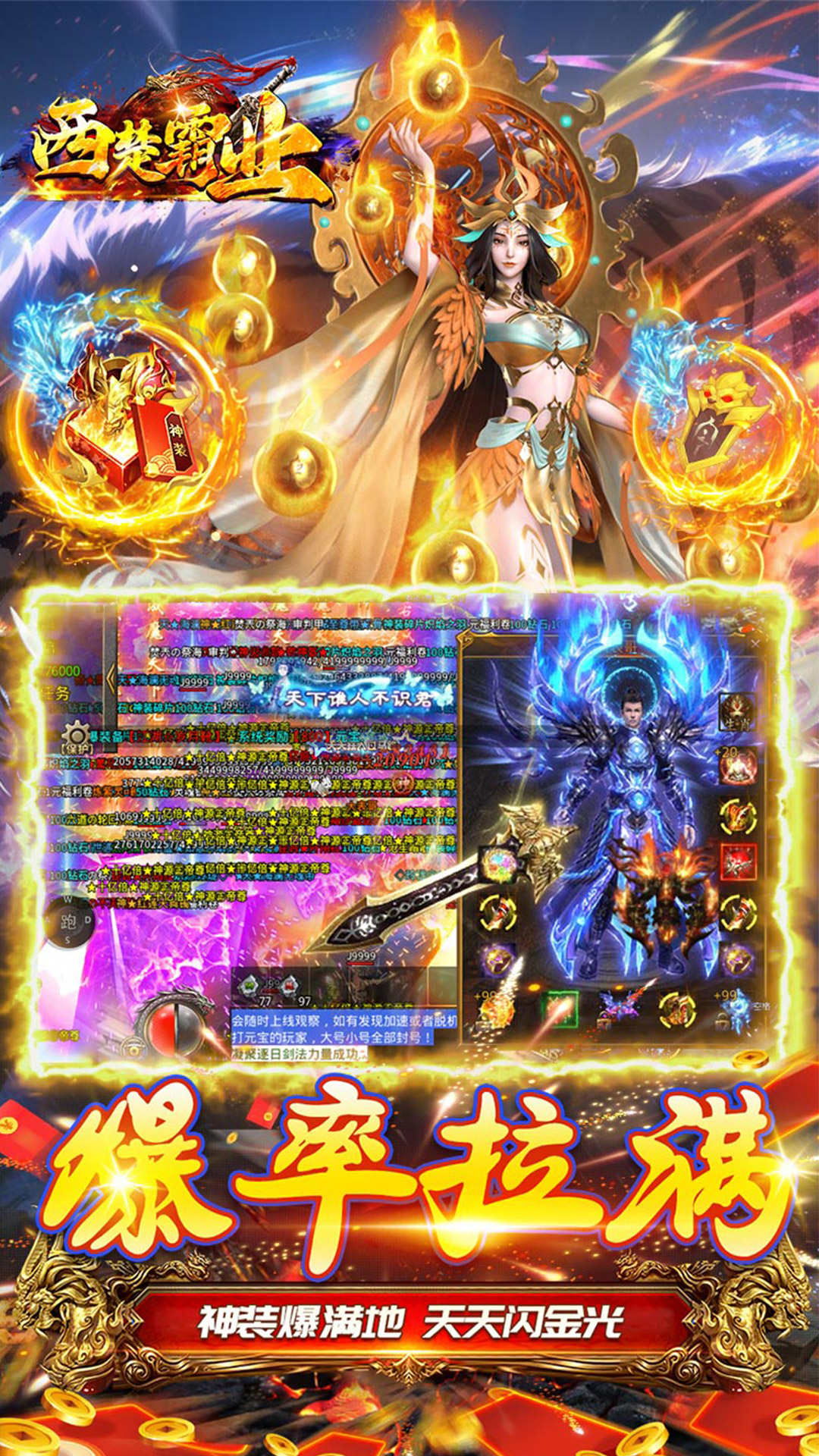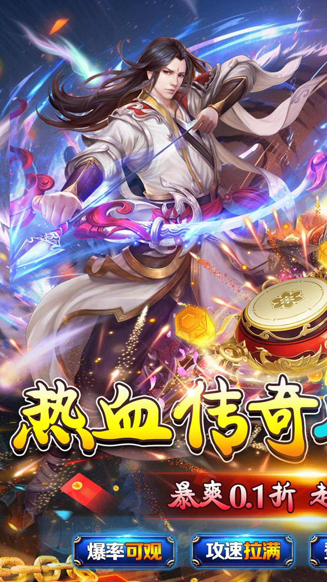 ★充值0.1折,比例1:1000,散人爽服!★上线送好礼,登录送充值卷,福利送不停!★不一样的打金速度,零氪也能玩的爽!★玩法简单粗暴,没有暗坑,所有材料都能打!★爆率全开,群体切割,所有装备都能爆!★热血攻沙,超爽活动,兄弟集结,沙城争霸!
