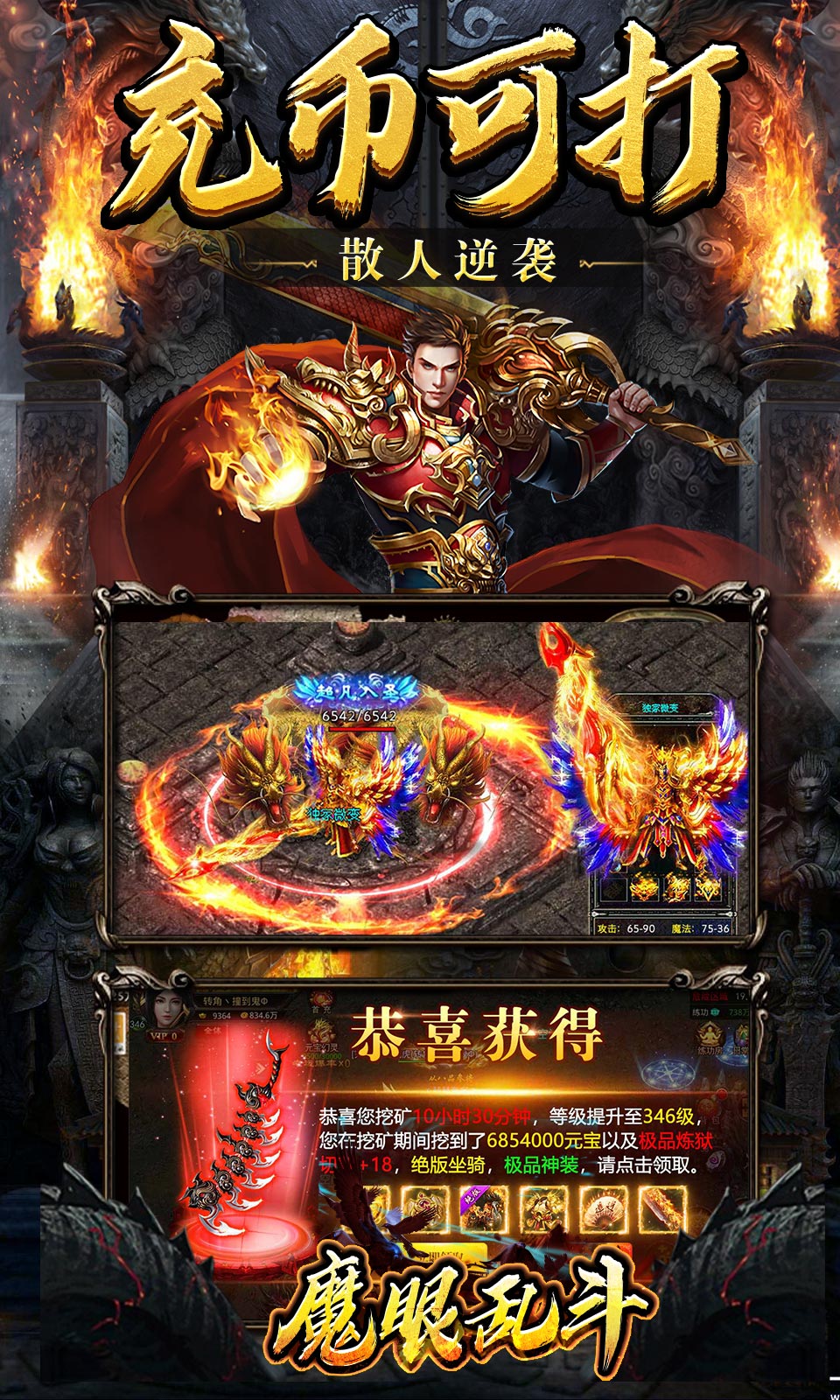 1:超高爆率!复古玩法2:上线送自动拾取+自动回收,安心挂机不担忧!3:选择转职其他职业,每个人都能发挥重要作用4:超多熟悉地图,超多经典玩法5:元宝靠打,一切靠肝