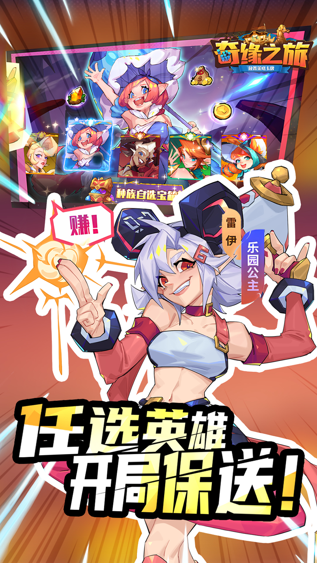 1、上线就送648元代金券,可替代RMB任你买买买!2、爆送10000抽,无等级门槛,新手任务跑完就能领!3、免费终身卡,每日福利享不停!4、SSR英雄自选免费送,超强英雄任你选!5、4倍加速,一键通关,超快解锁!