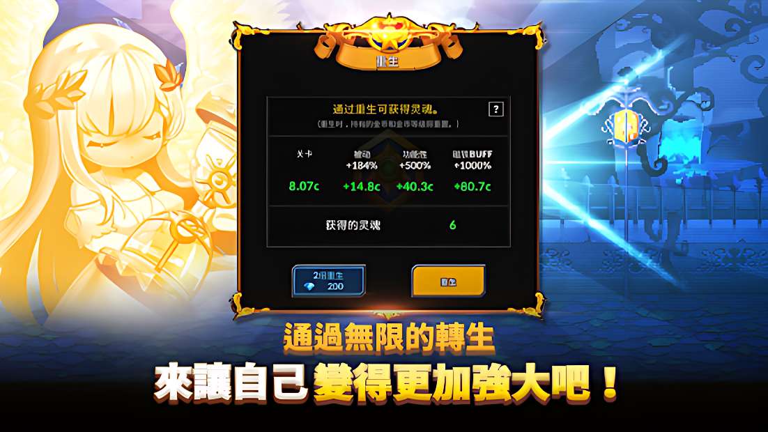 收集(collection)、合成(Merge)、自动战斗(Auto)、重生(Rebirth)、放置型(idle) RPG所有玩法都汇聚一身! 因为实在太有趣了,可能会感觉时间过得很快。
