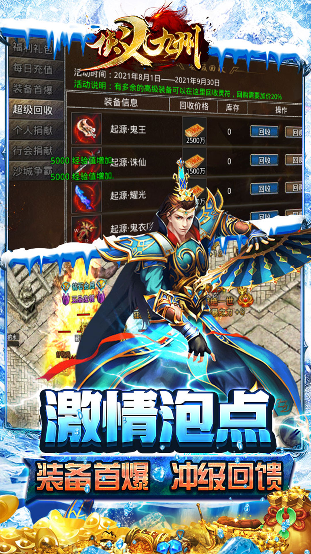 《侠义九州(高爆冰雪神魔)》单职业冰雪传奇手游!上线送会员,登录就能领取大量礼包!实物兑换,开区福利,散人一样能玩爽,能搬砖,可以打金,所有装备都能爆,所有材料都能打!玩法多样,热血激情,沙城争霸。冰雪沉默传奇,快邀请你的兄弟一起下载体验,开启你的传奇之路!