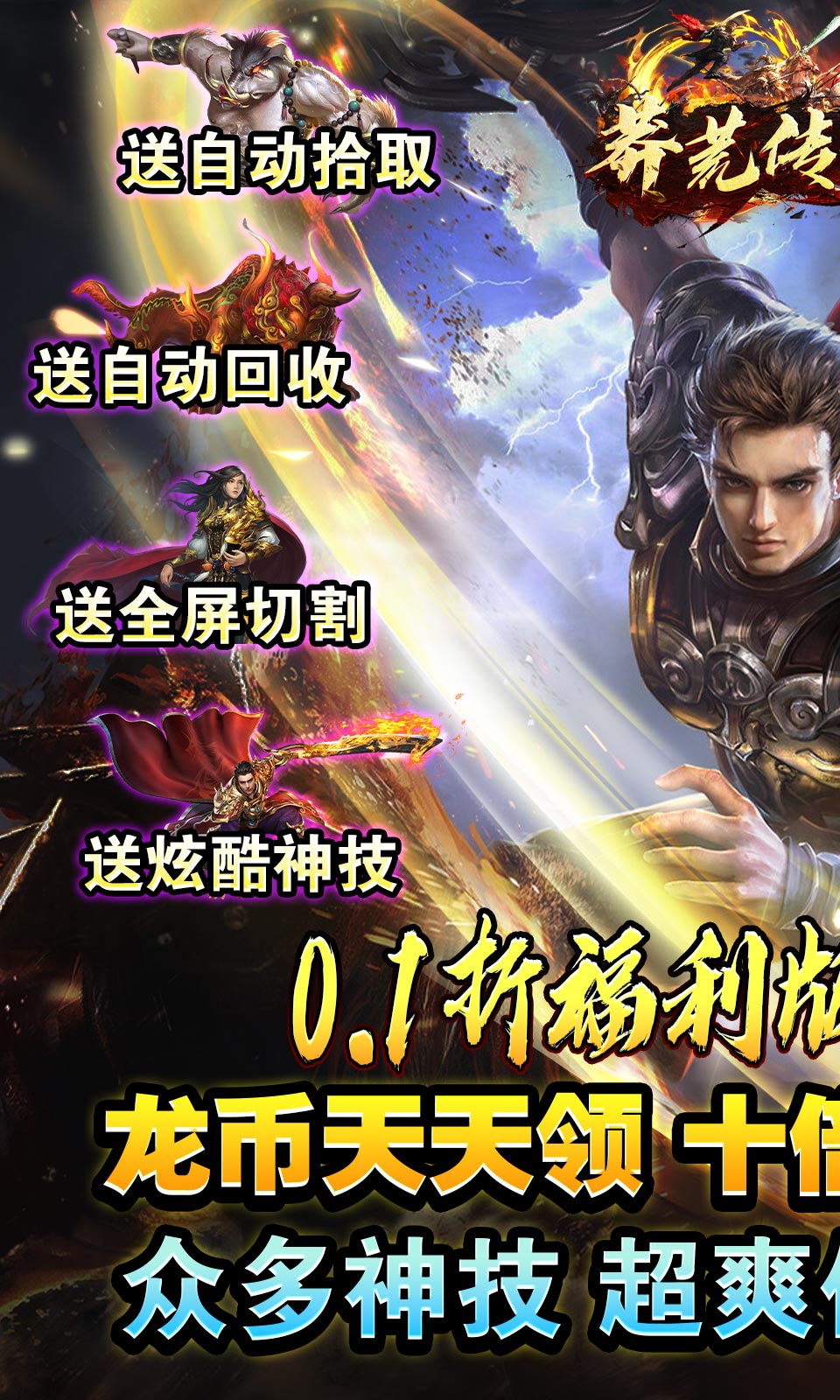 1、上线就送:自动拾物,自动回收,超大背包和三页仓库!2、七天扶持:送大量真实充值,不充钱也能体验充钱快感!3、在线奖励:每天上线可以领取大量材料跟充值货币!4、每日杀怪:送大量充值红包+VIP积分,VIP免费送!5、每个地图都有福利BOSS跟超级BOSS,真实充值跟货币大量爆,每天随便白嫖上千元充值!